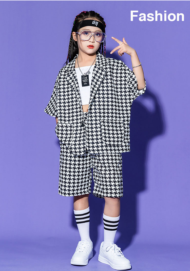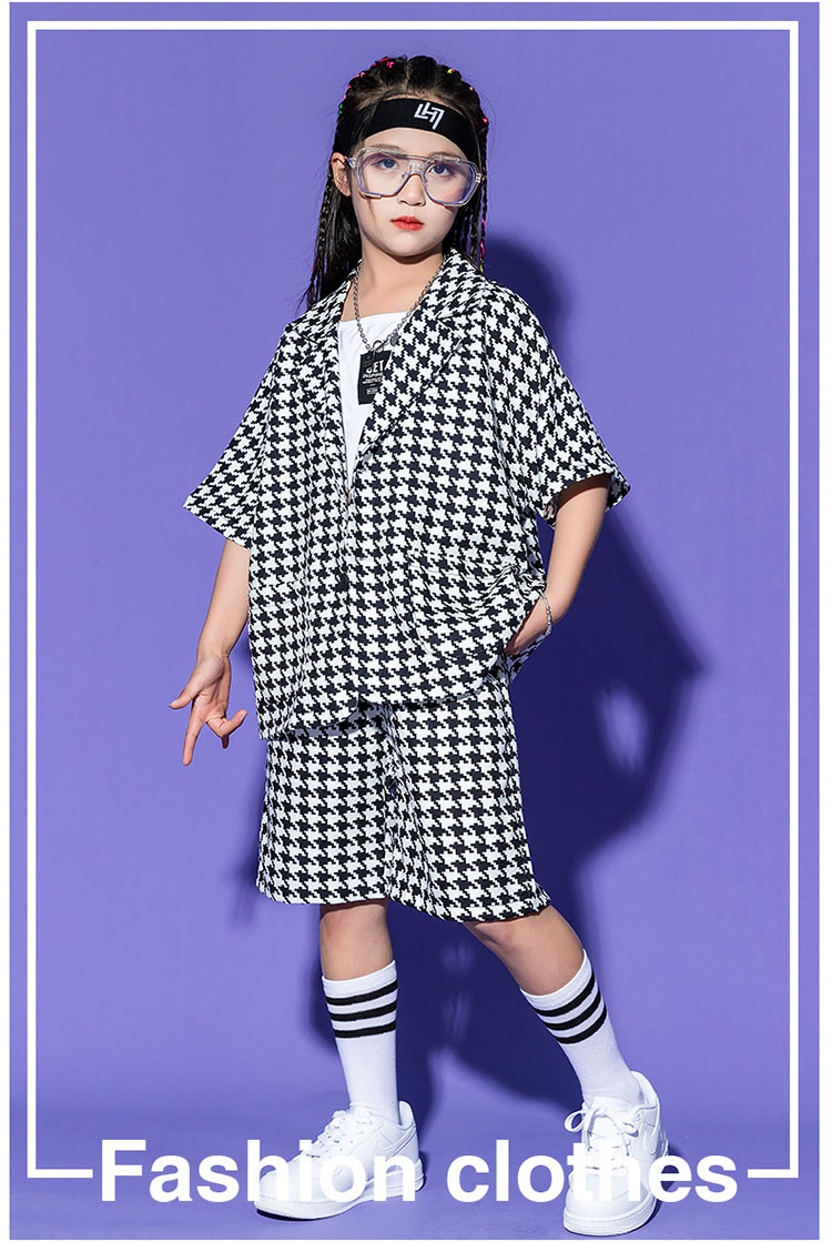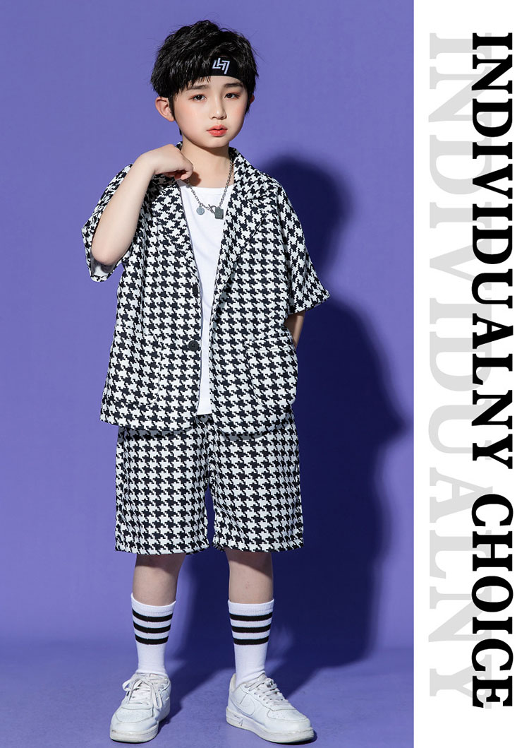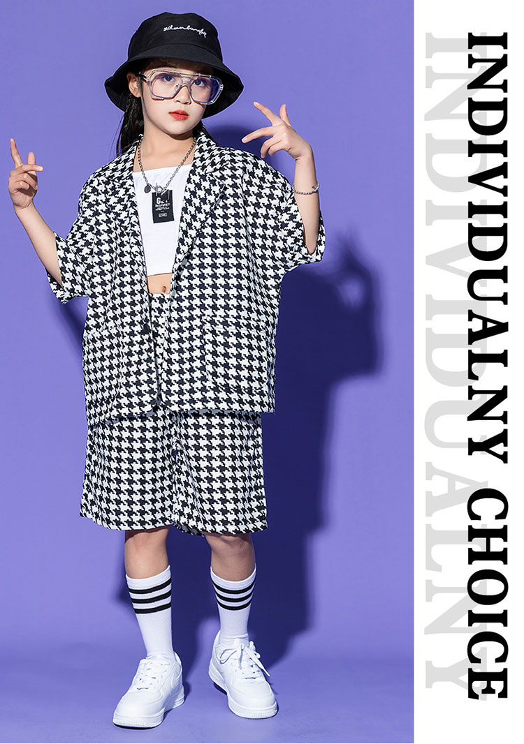 子供スーツ 千鳥柄 フォーマル ジャケット パンツ ジャズダンス ガールズ 韓国 ヒップホップ hiphop セットアップ 演出服 応援団 練習着 ユニセックス 110 180