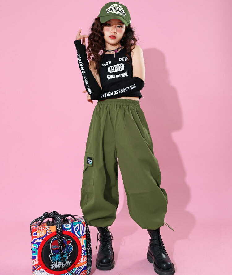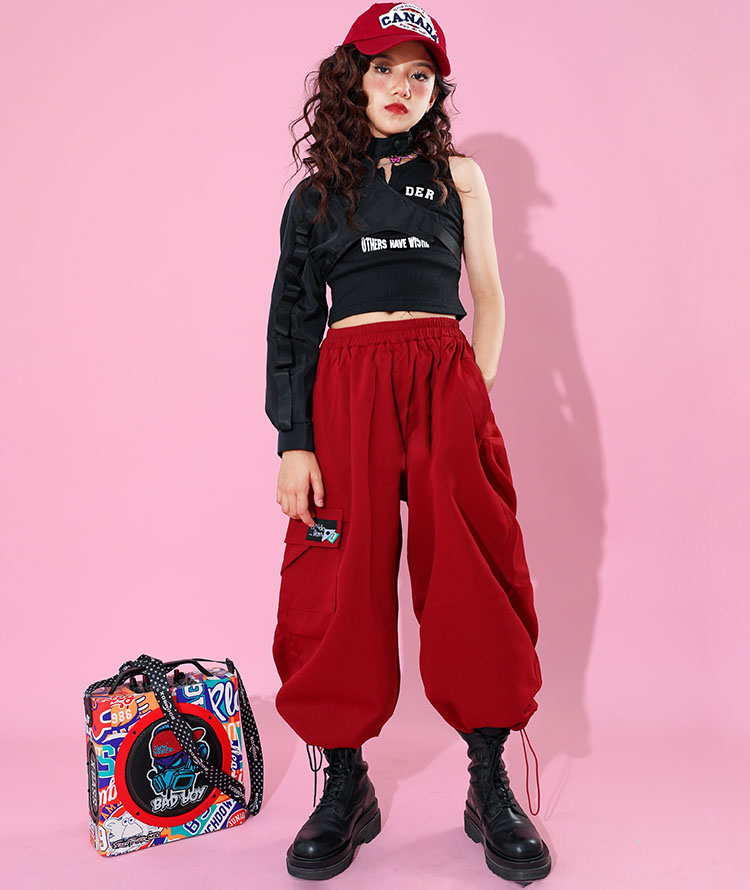 キッズダンス衣装 女の子 赤 カーゴパ