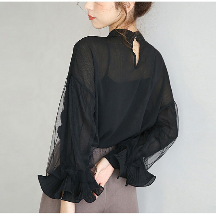 シアースリーブ ドッキングシャツ ボウタイシャツブラウス