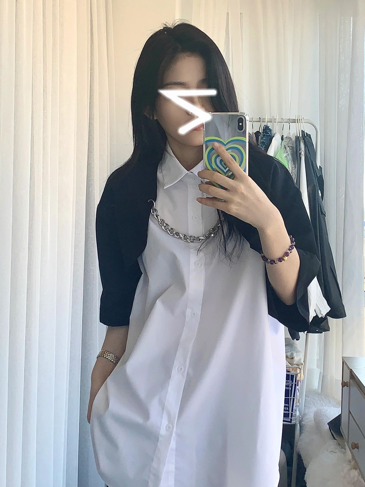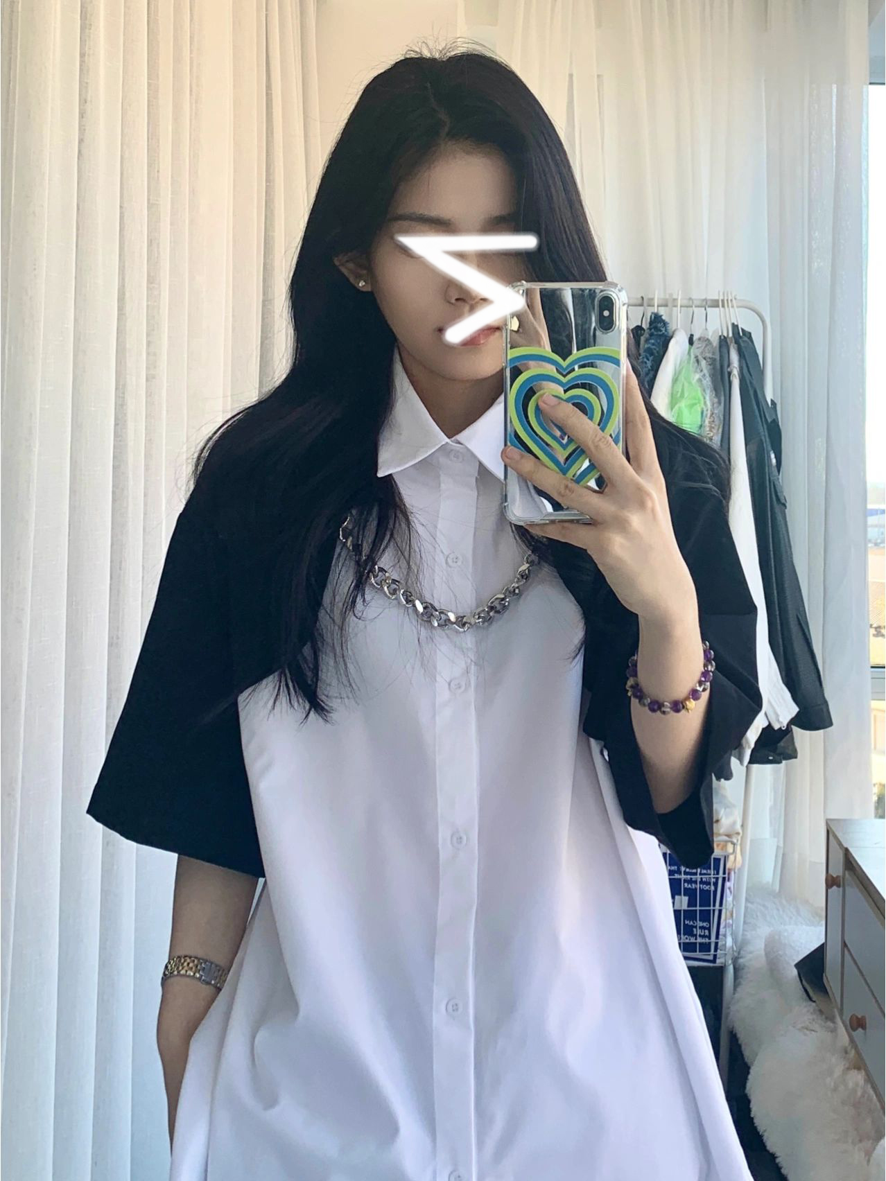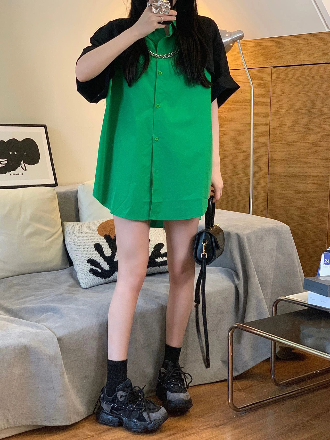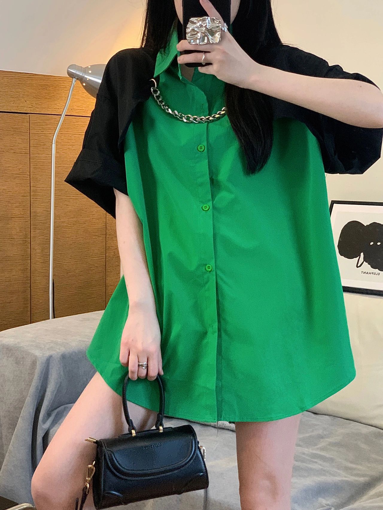 チェーン付バイカラーシャツ2色ブラウス