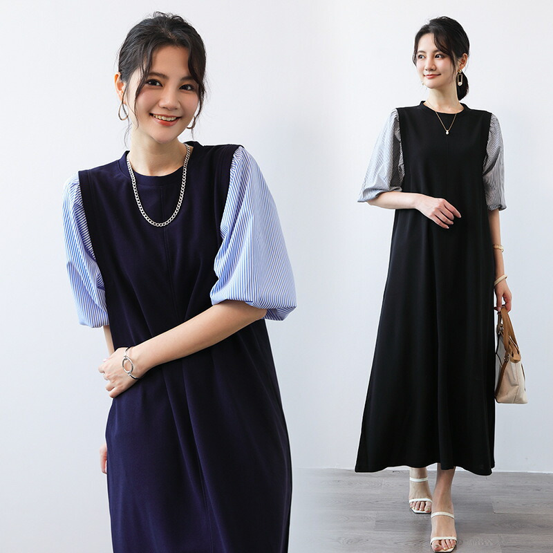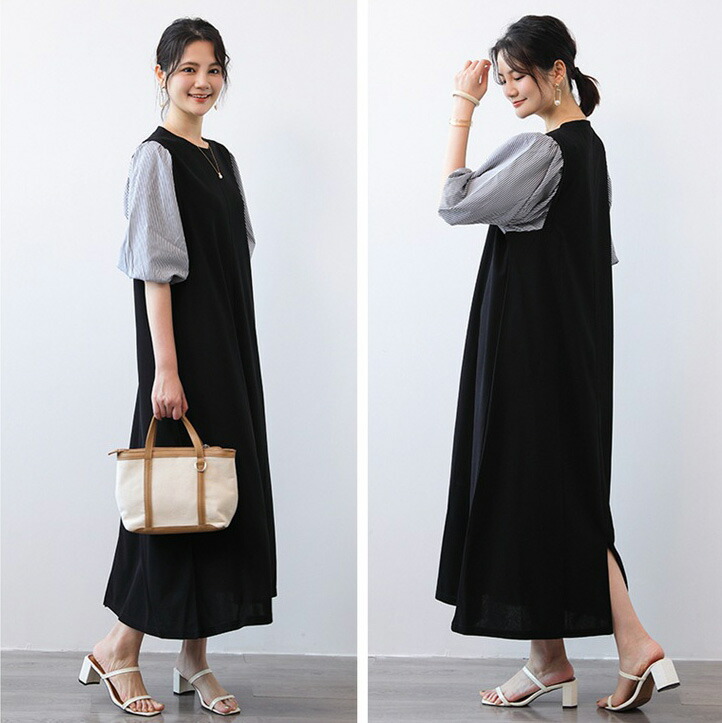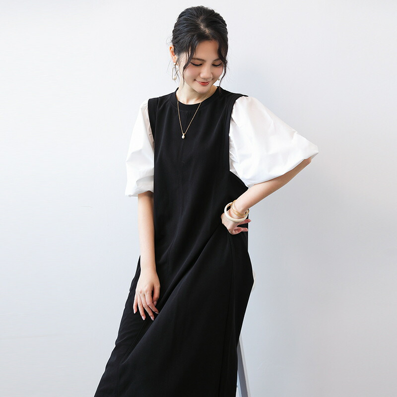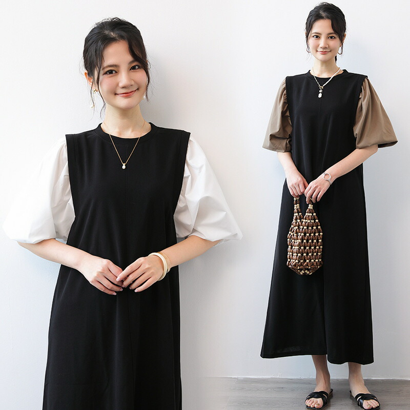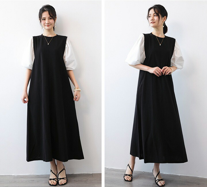 ぽわん袖 ロングワンピース レディース