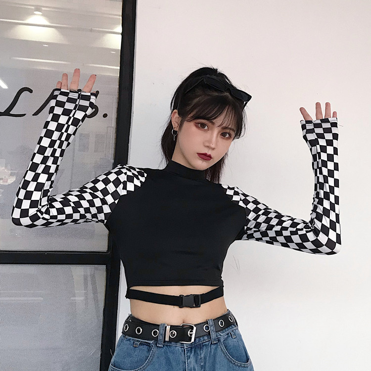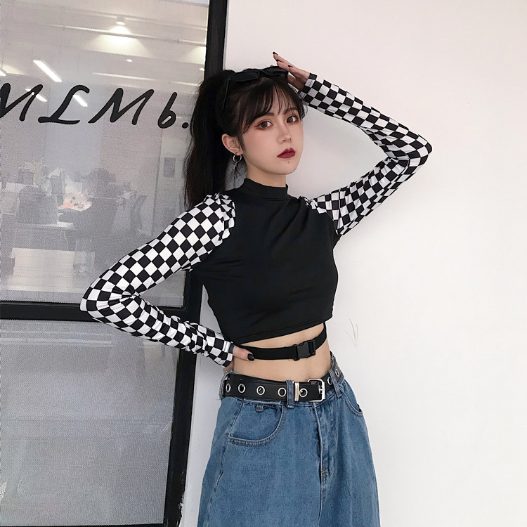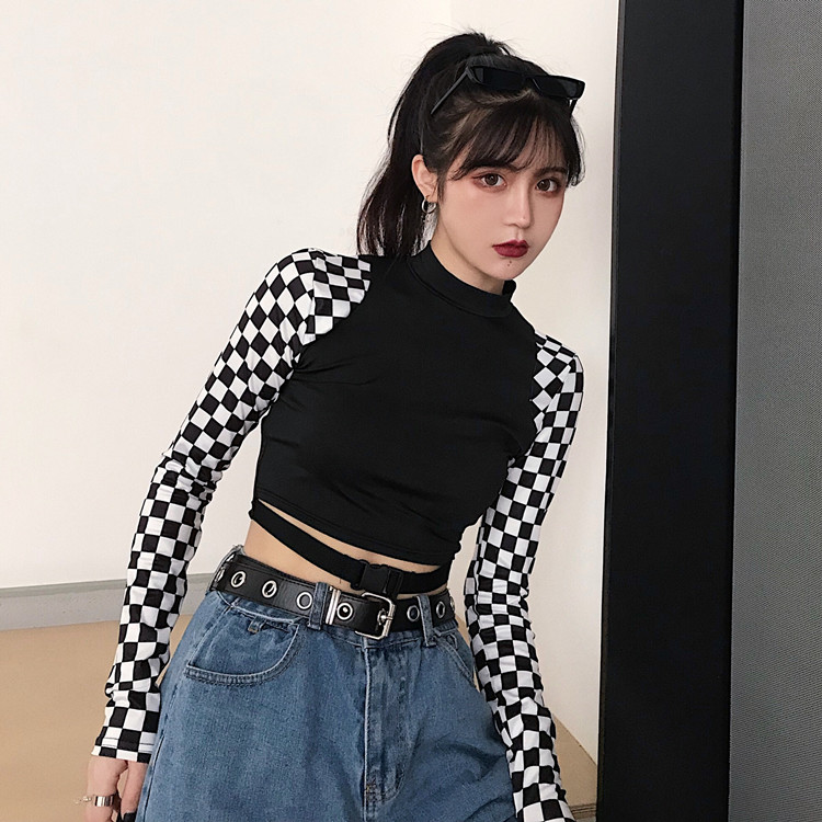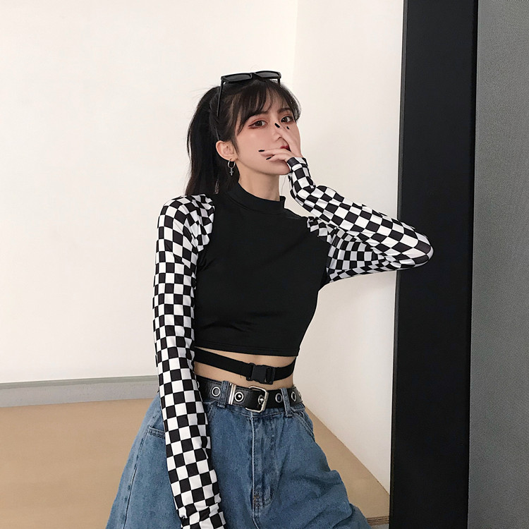 チェックショート丈トップスカットソー長