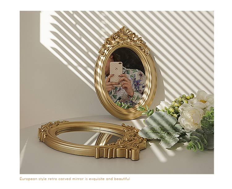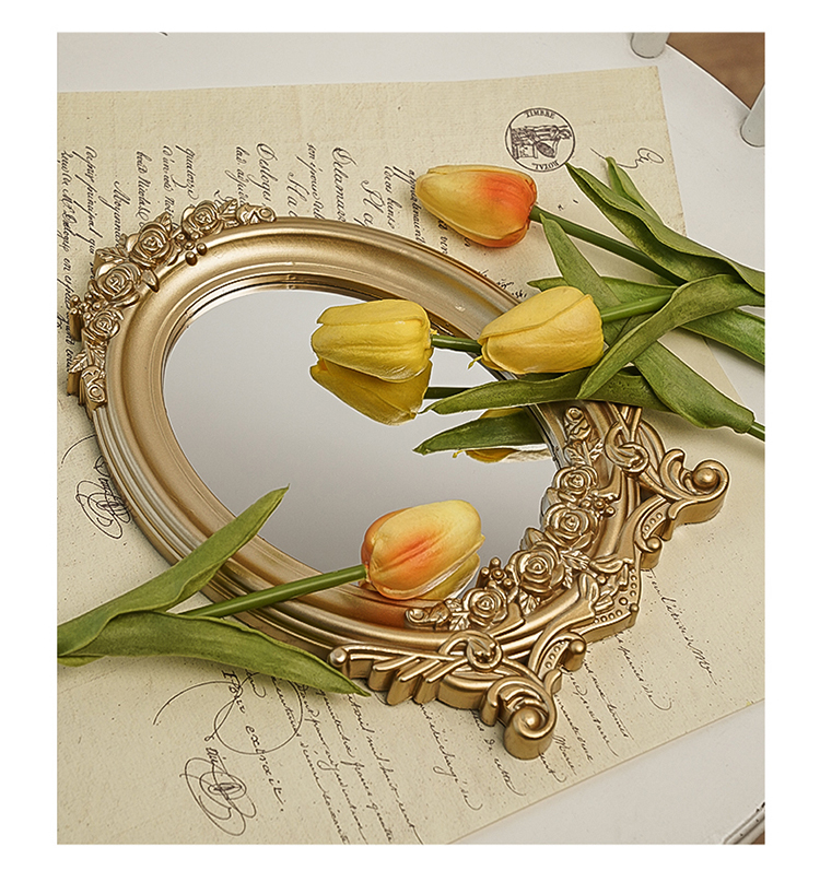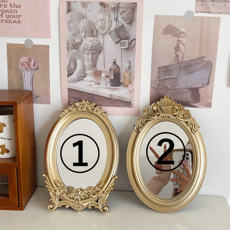 アンティークミラー2デザインスタンドミラー鏡デザイン雑貨インテリアおしゃれかわいい可愛い卓上丸上大きい割れない 韓国韓国雑貨ゴールド化粧鏡卓上鏡コンパクト円レトロヨーロッパ花柄フラワーデザイン