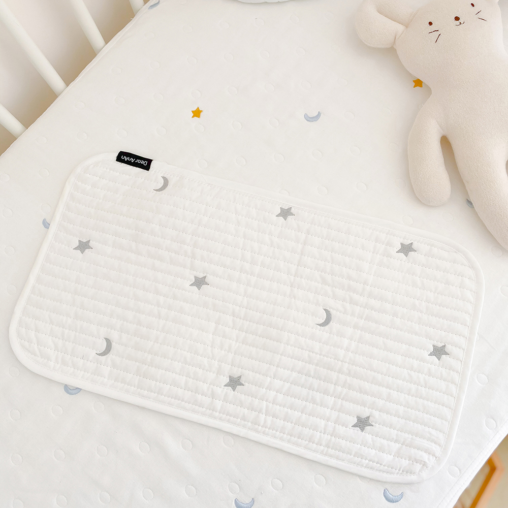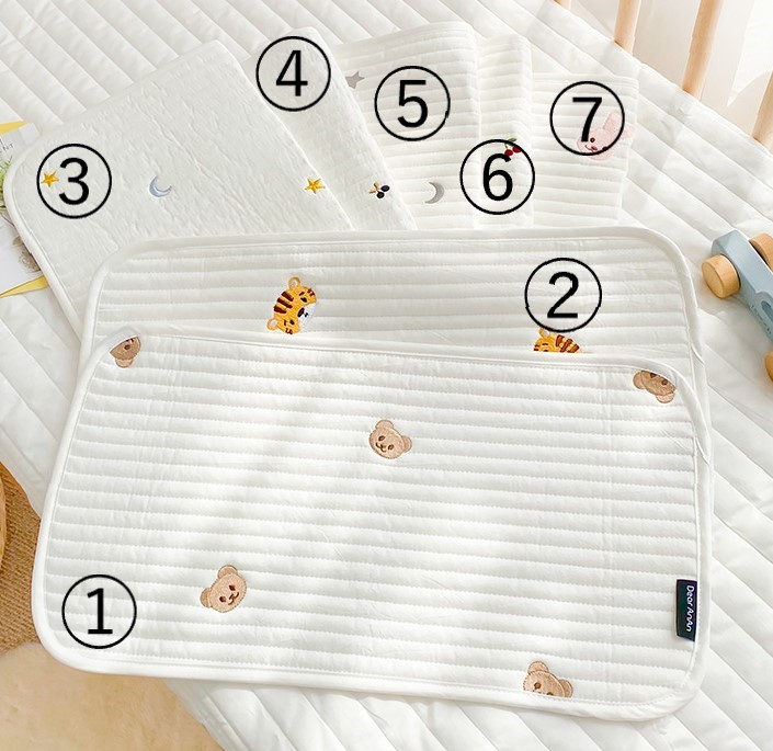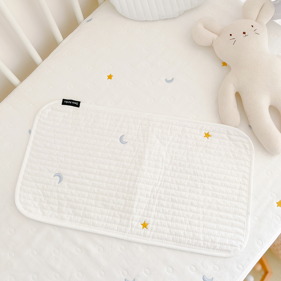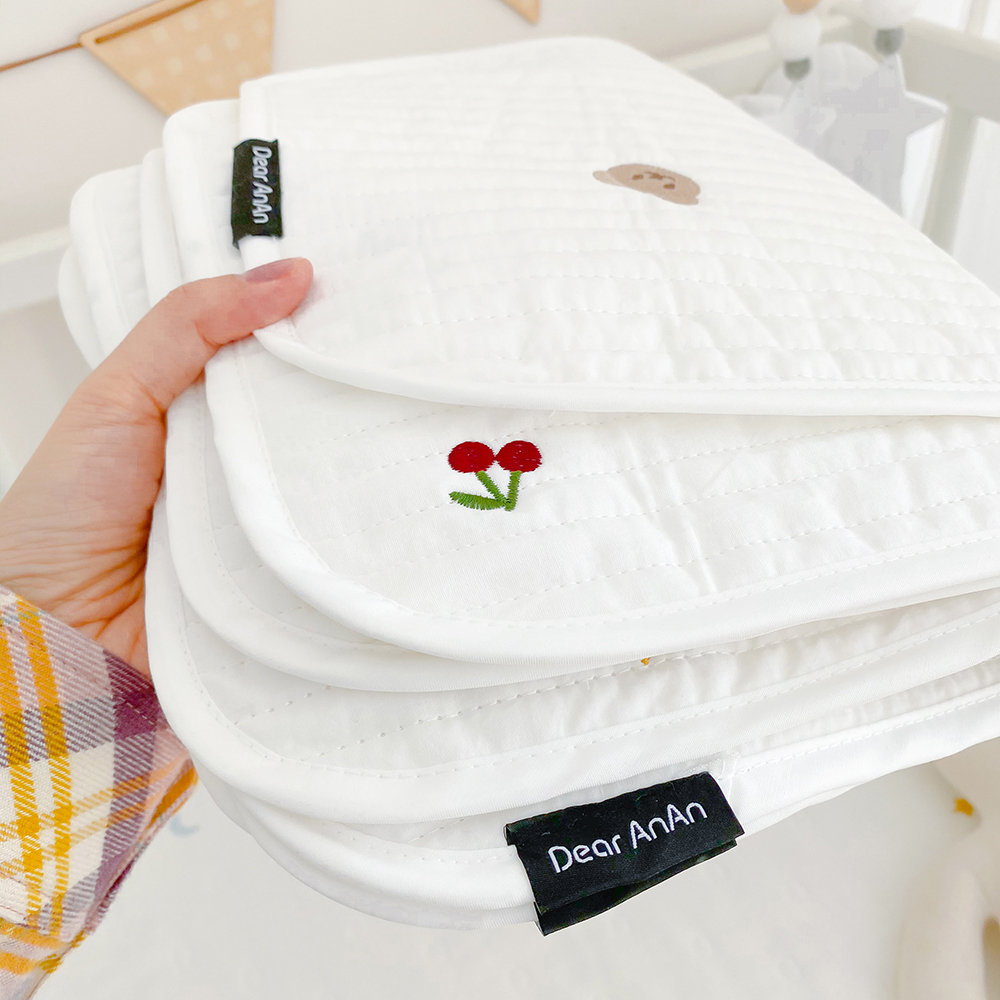赤ちゃんキルティングお昼寝マット7デザインシーツベビーおしゃれ可愛いくまベアさくらんぼ星月うさぎ柄大きいおねしょおむつ替えシート持ち運び軽い軽量折り畳みおむつ交換綿コットン25×40白ホワイト刺繍韓国