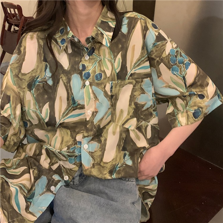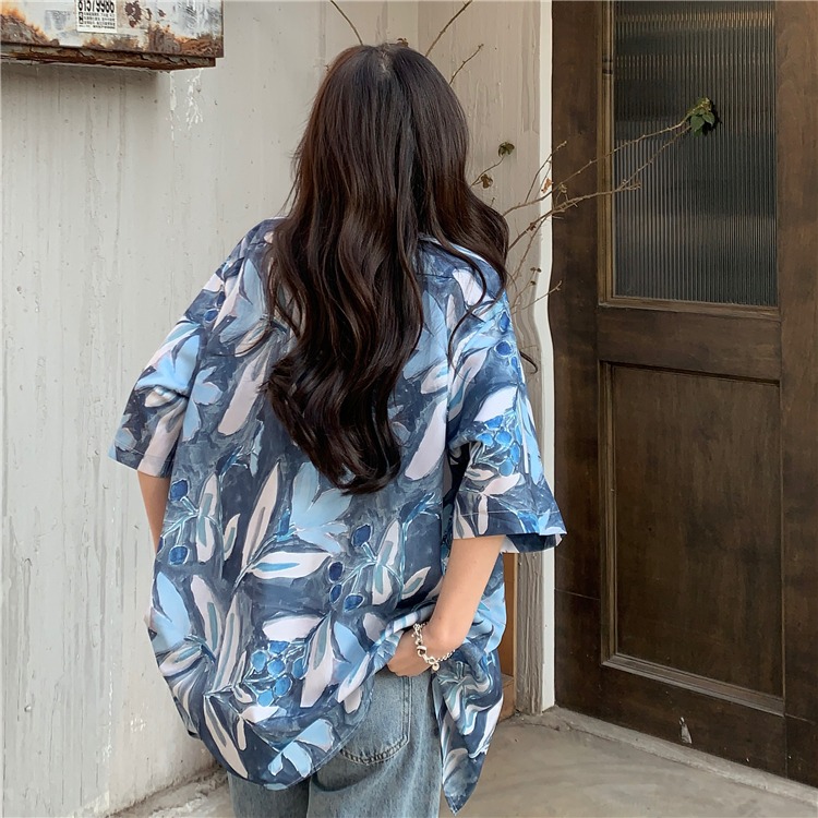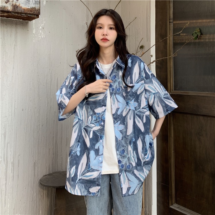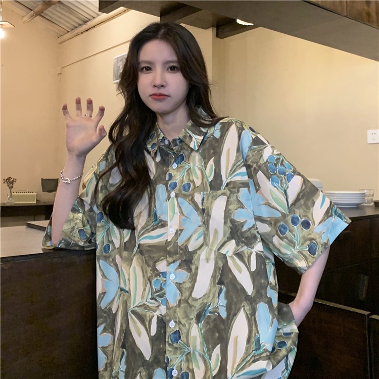 花柄シャツ2色ブラウス半袖五分袖トップ