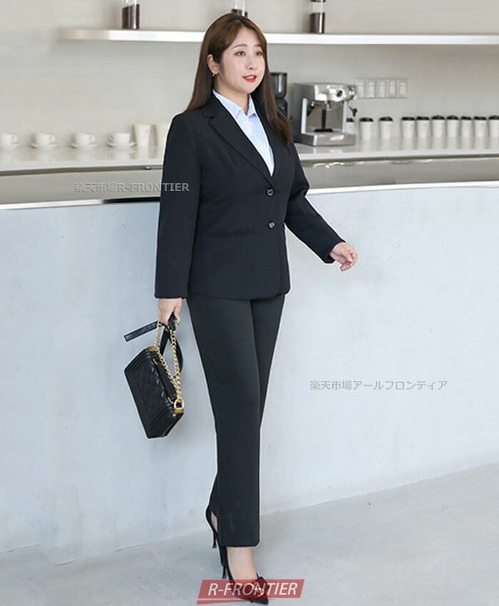 vertical-key: ジャケット+パンツ(ブラック) ジャケット+パンツ(ネイビー) ブラウス(ホワイト) ブラウス(ブルー)