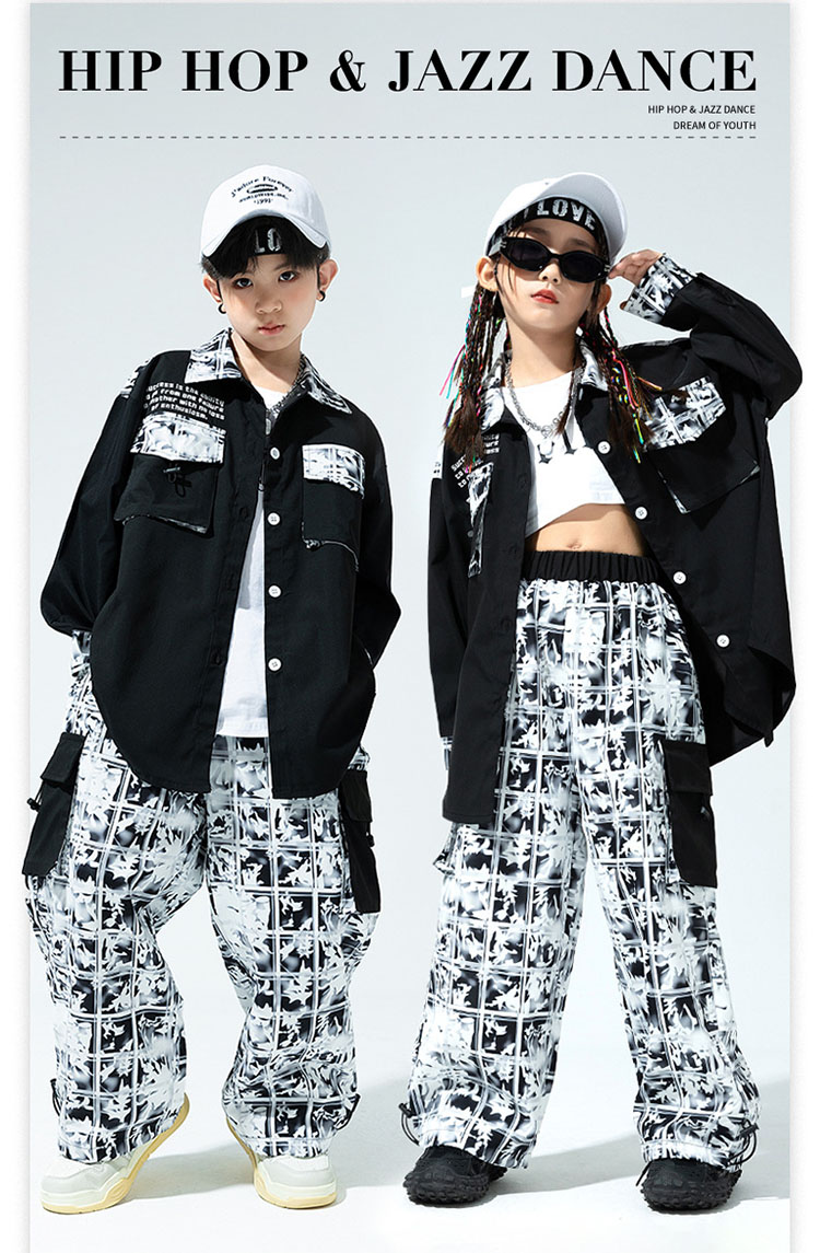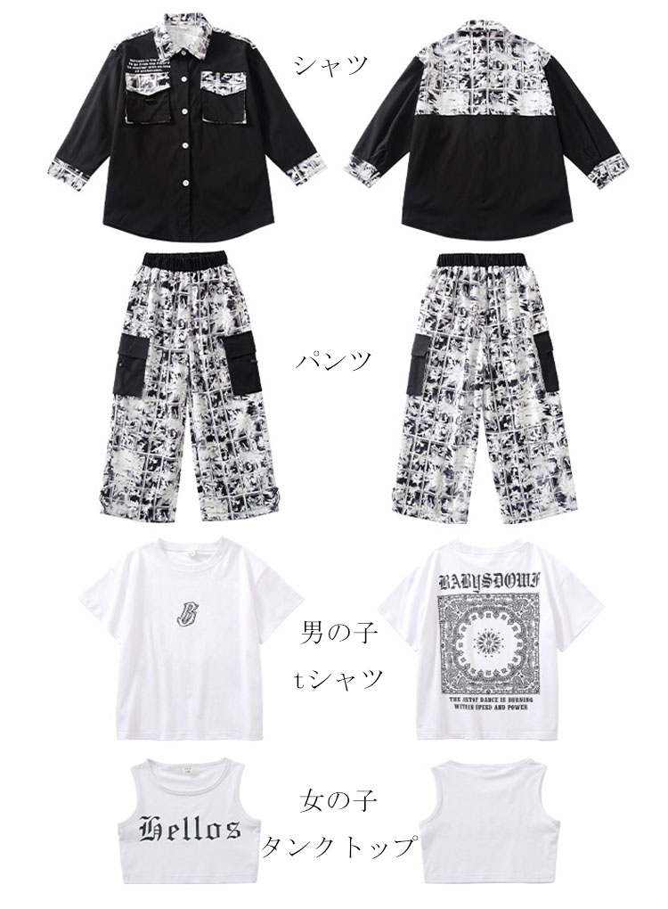 ダンス衣装 キッズ セットアップ 長袖 シャツ ダンスパンツ ヒップホップ ジャズダンス 男の子 女の子 ガールズ カッコイイ 演出服 応援団 ステージ衣装 110-180