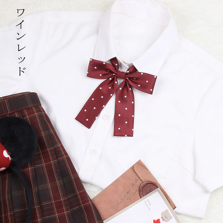 JK制服リボン 卒業式 リボン スーツ 卒服 クイックリボン 女の子韓国 JK制服用 人気 ワインレッド 緑 ダークブルー ピンク JK制服リボン ブラウン ドット 水玉柄 女の子