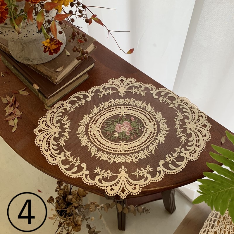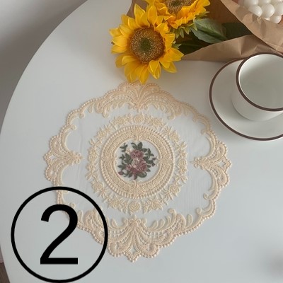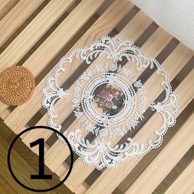 レース マット セット 2点セット ランチョンマット フリル フレア 花柄 刺繍 白 ホワイト おしゃれ かわいい 可愛い カフェ 北欧 花柄 生地 インテリア
