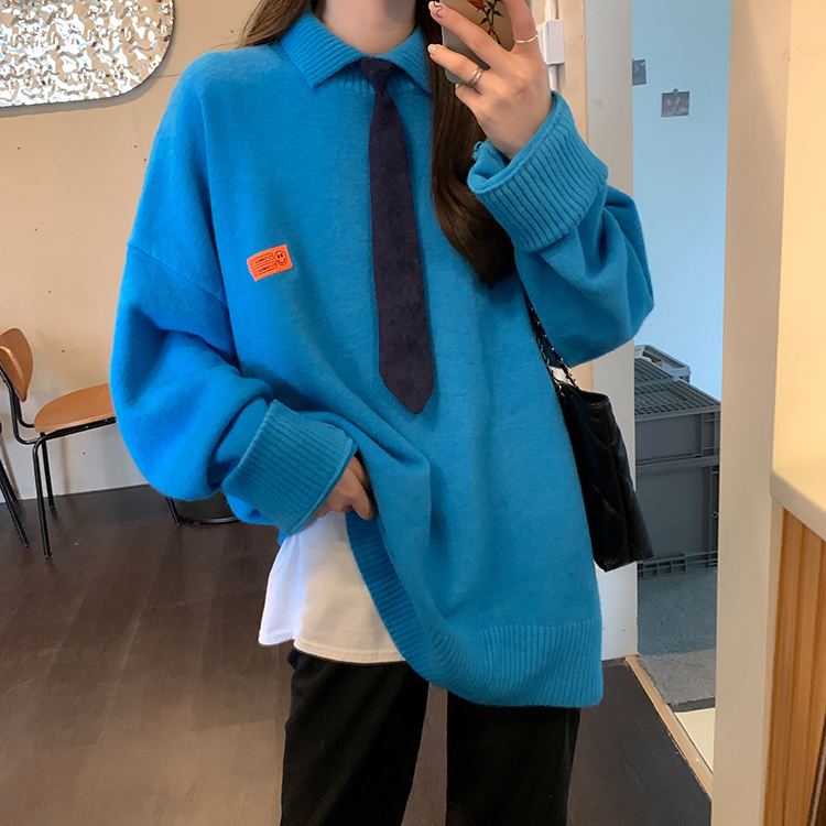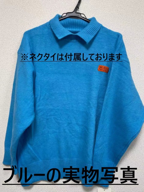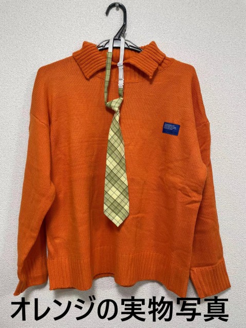 ネクタイ付 セーター 6色 ニット 長袖 トップス ちょうちょ 蝶 ロゴ 刺繍 レディース メンズ ガールづ 大きい ゆったり 長め ダンス 衣装 ヒップホップ HIPHOP 学生 ポロシャツ チェック おしゃれ カラフル ビッグ 奇抜 派手 レトロ 制服 韓国