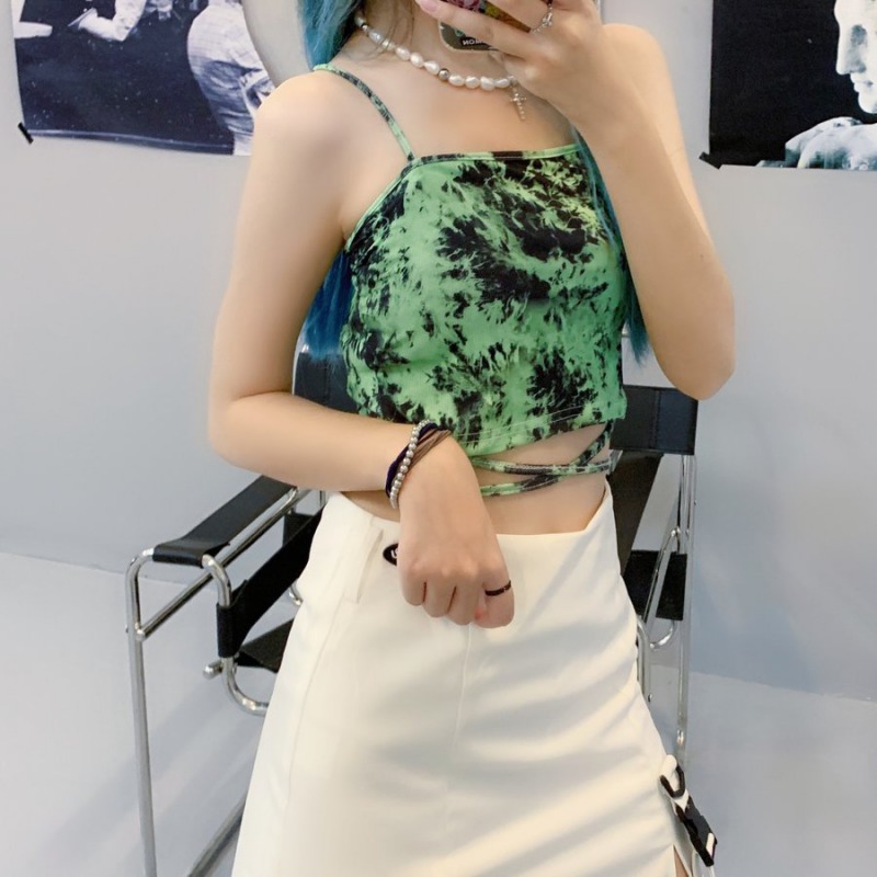 ダイダイ柄 キャミソール 2色 マーブル リボン レースアップ ショート丈 短い 短め へそ出し セクシー インナー カラフル ダンス 衣装 ヒップホップ HIPHOP レディース ガールズ ストリート 韓国 おしゃれ 可愛い 大人 服 トップス タンクトップ