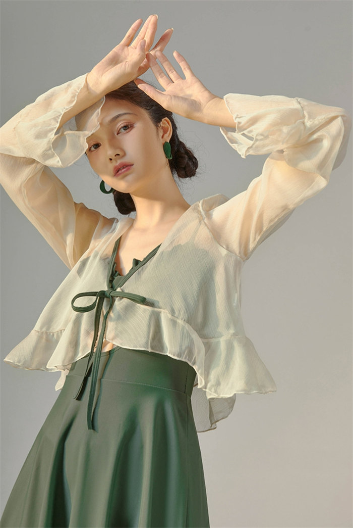 シフォンブラウス シアーブラウス ボリューム袖