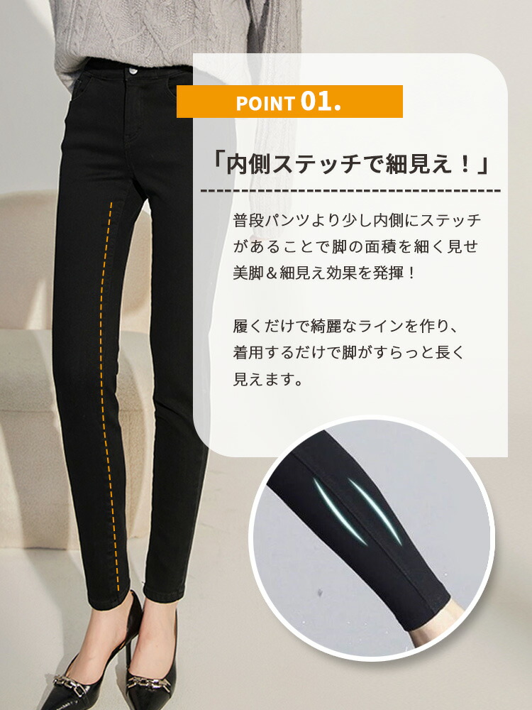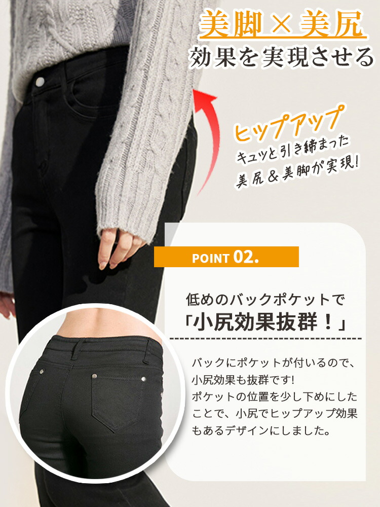 シンプルなすっきり見えるスキニーなのでブーツインはもちろん、パンプスやショートブーデイーと合わせても足元まで美脚になるように設計しました☆