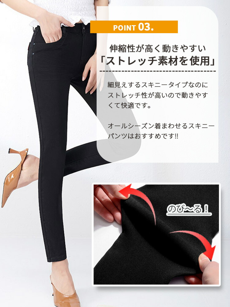 商品名 スキニーパンツ レディース ロング ストレッチ ハイウエスト スリムパンツ レギンス ボトムス パンツ スキニー きれいめ ロングパンツ 長ズボン ストレート 大きいサイズ 無地 春 夏 秋 冬 おしゃれ かわいい 大人可愛い 美脚 美ライン 細見え 通勤 黒
