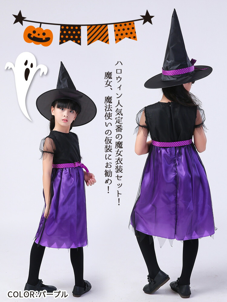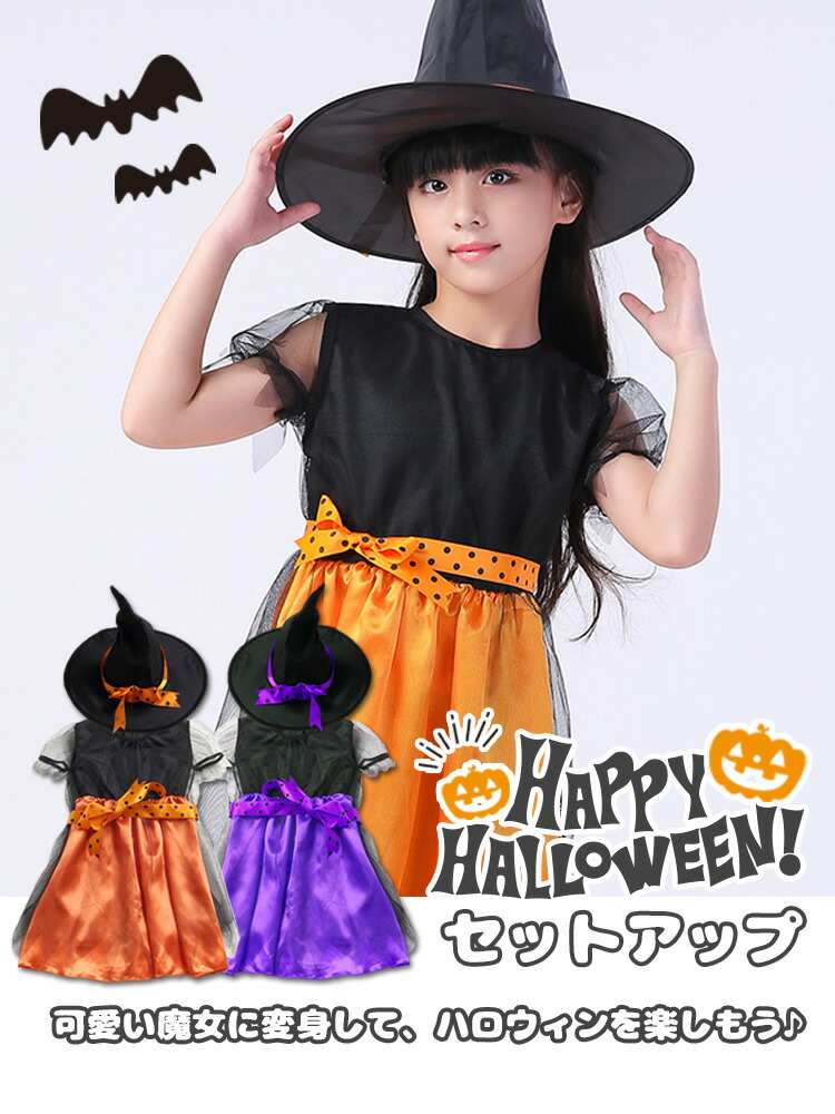 ハロウィン コスプレ 衣装 子供 女の子 こども キッズ 魔女 妖精 仮装 可愛い 帽子 ワンピース デビル コスチューム ウィッチ コウモリ ハロウィーン ダンス衣装 子ども 女児 ジュニア 幼稚園 保育園 小学生 中学生 90 100 110 120 130 140 150 160