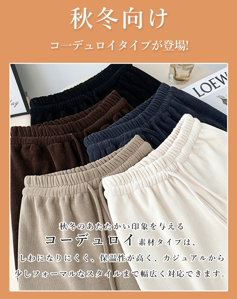 カラー: プリーツタイプ(ブラック) プリーツタイプ(ダークグレー) プリーツタイプ(ベージュ) プリーツタイプ(ブルー) プリーツタイプ(ネイビー) コ一デュロイタイプ(ブラック) コ一デュロイタイプ(グレー) コ一デュロイタイプ(アイボリ) コ一デュロイタイプ(モカ) コ一デュロイ裏起毛(ブラック) コ一デュロイ裏起毛(グレー) コ一デュロイ裏起毛(アイボリ) コ一デュロイ裏起毛タイプ(モカ)