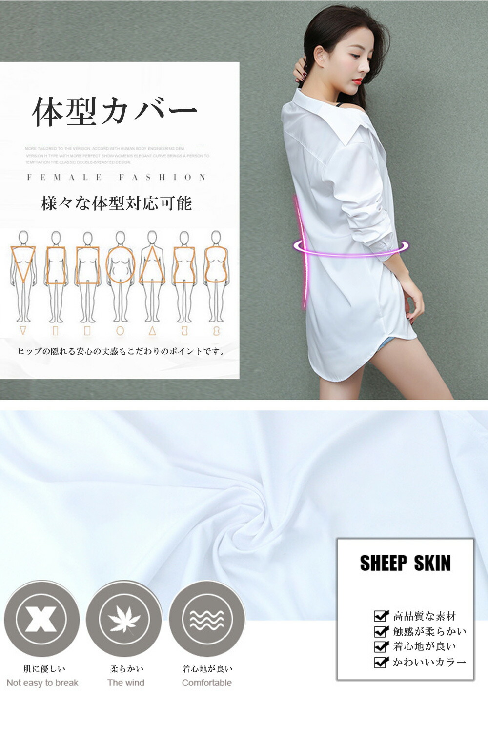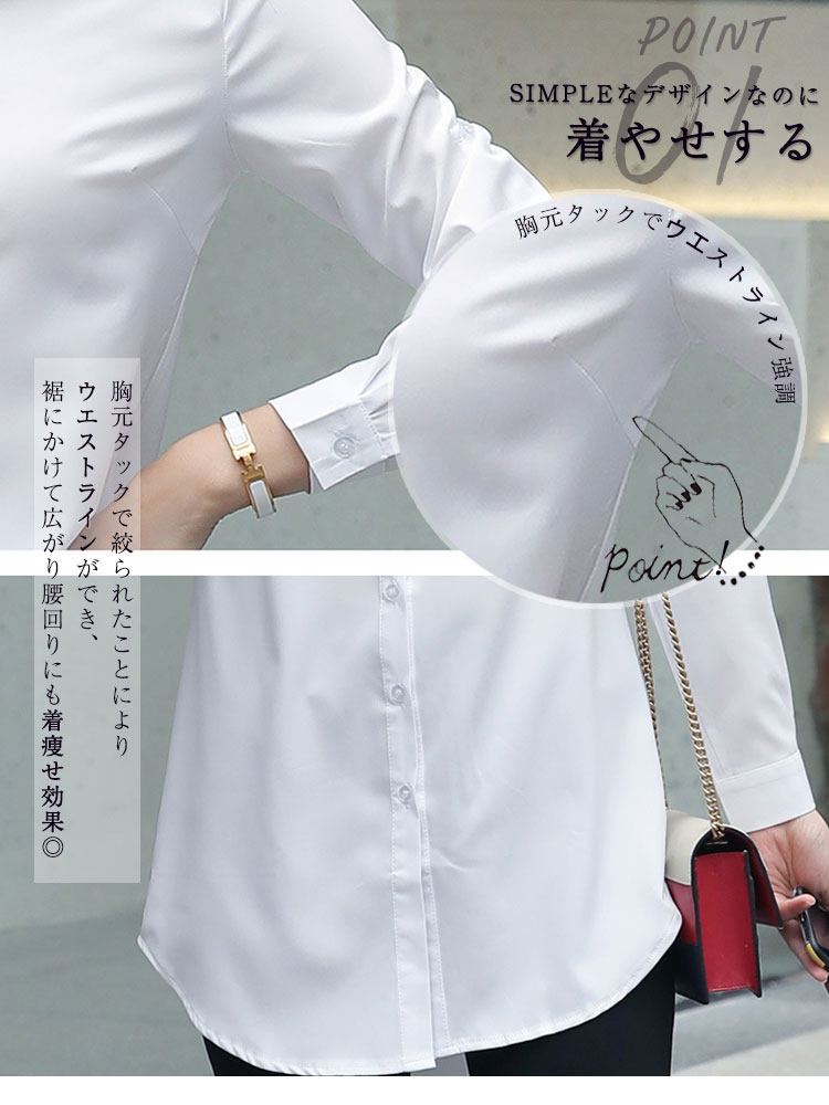 チュニックシャツ 長袖シャツ 春夏 秋冬 ロングシャツ Yシャツ シワになりにくい トップス オーバーサイズ スリム 上品 無地 事務服 リクルート ビジネス 就活 20代 30代 40代 50代