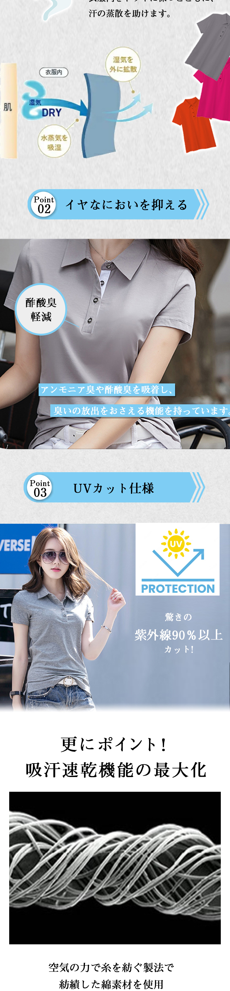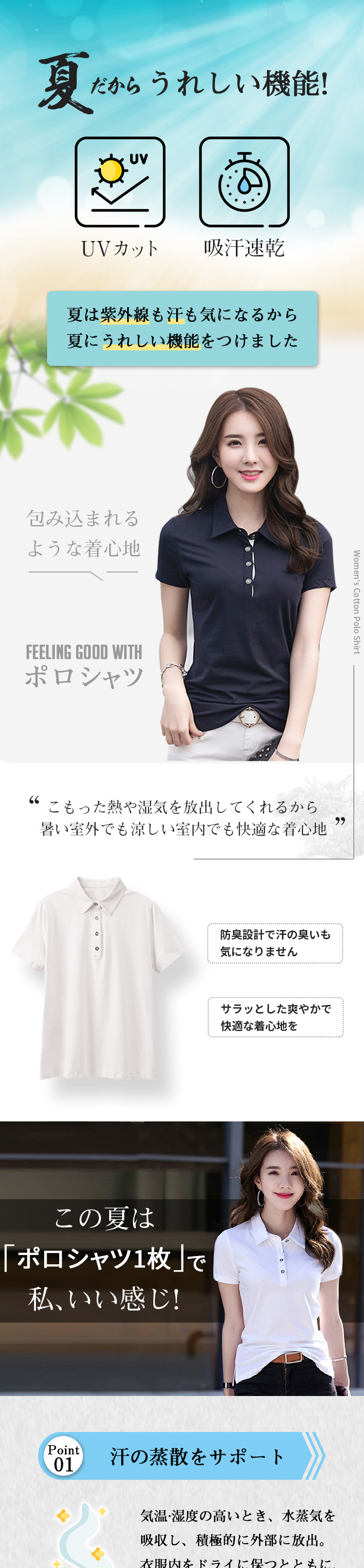 トップス ポロシャツ レディース カラフル ボタン 半袖 かわいい シンプル 無地 大きいサイズ おしゃれ 吸汗速乾 黒
