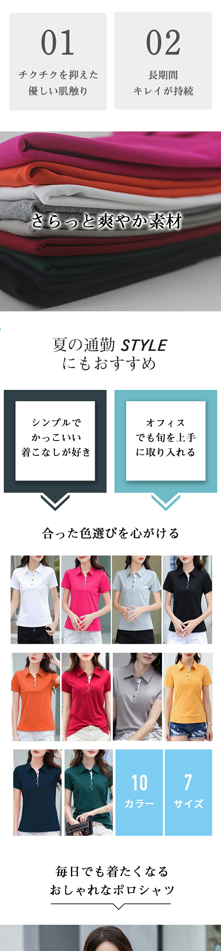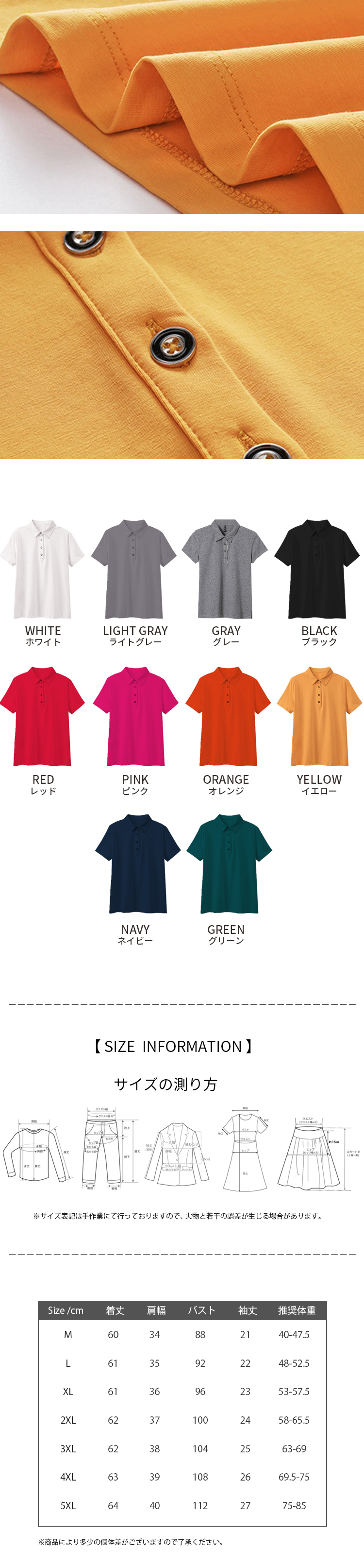 トップス ポロシャツ レディース カラフル ボタン 半袖 かわいい シンプル 無地 大きいサイズ おしゃれ 吸汗速乾 黒【品番】 fs-lf41【カラー】 1.グレー 2.ホワイト 3.ネイビー 4.ブラック 5.レッド 6.グリーン 7.ライトグレー 8.オレンジ 9.ピンク 10.イエロー【サイズ】