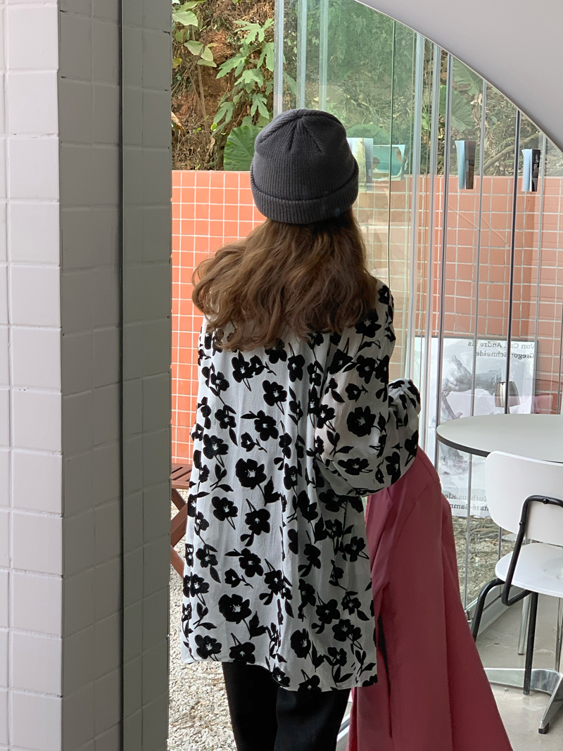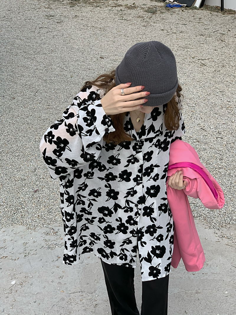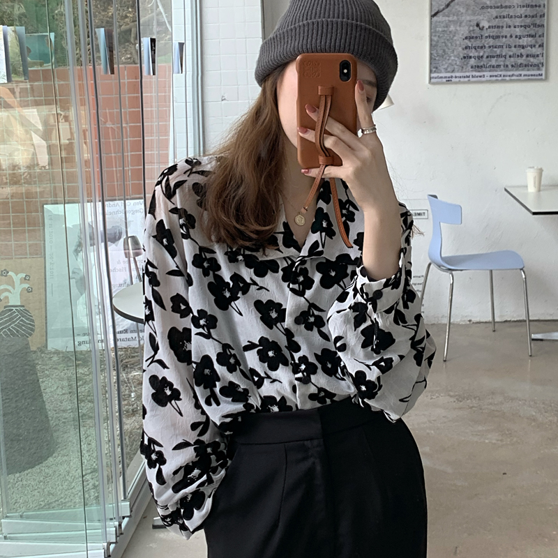 シースルー花柄ブラウスシャツ長袖トップ