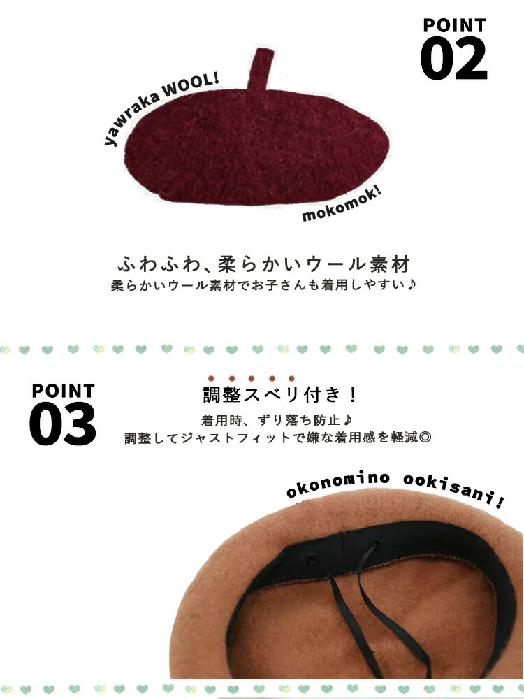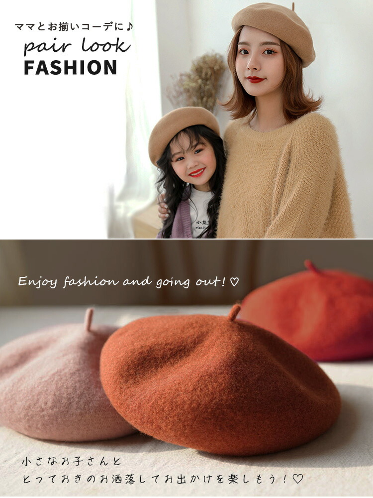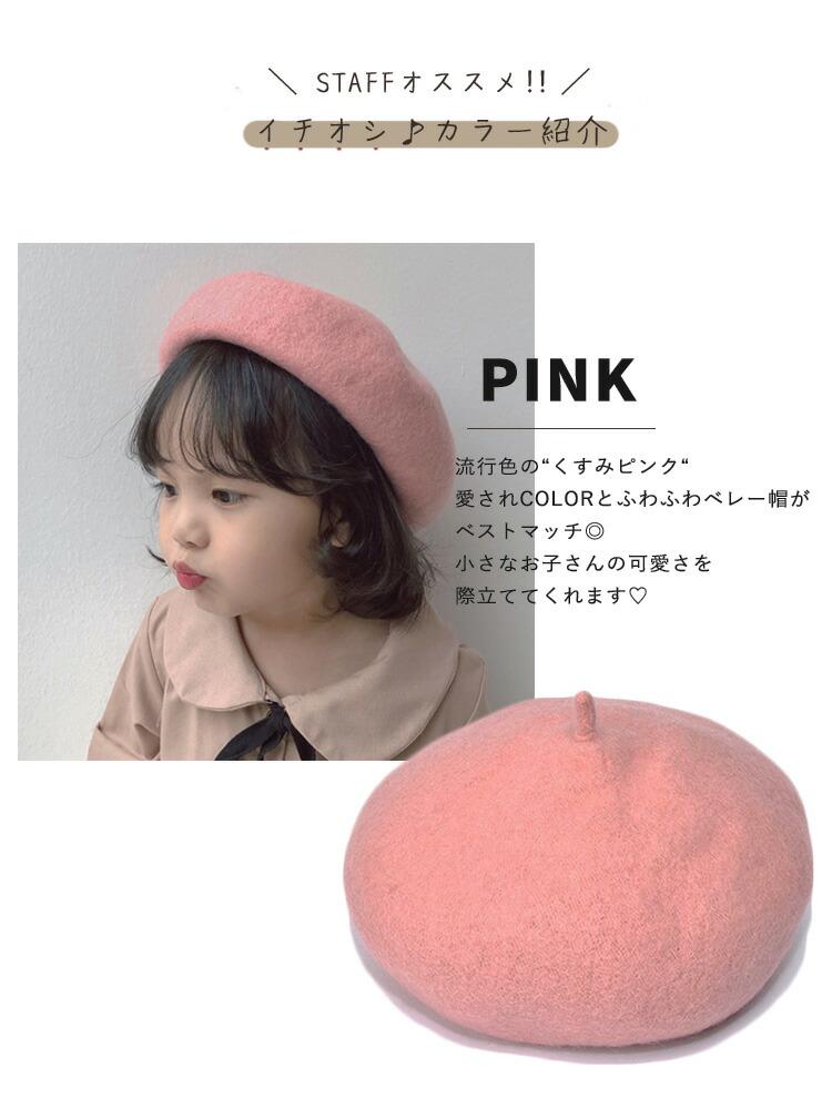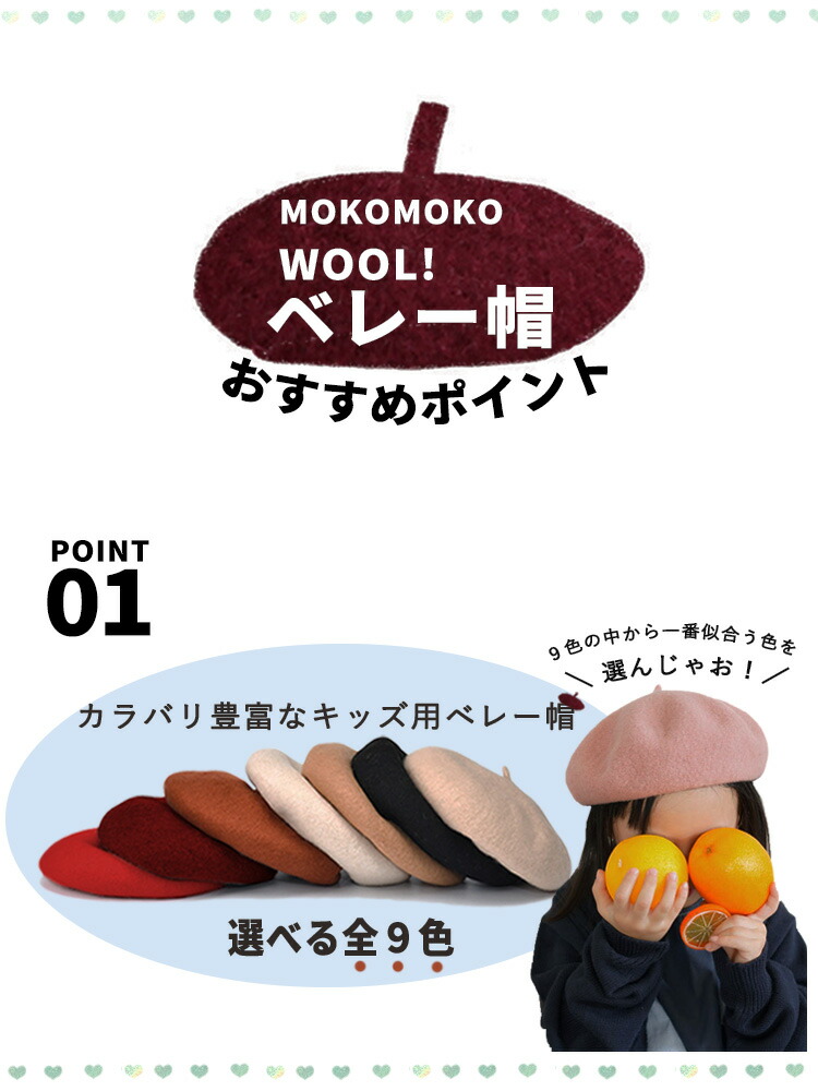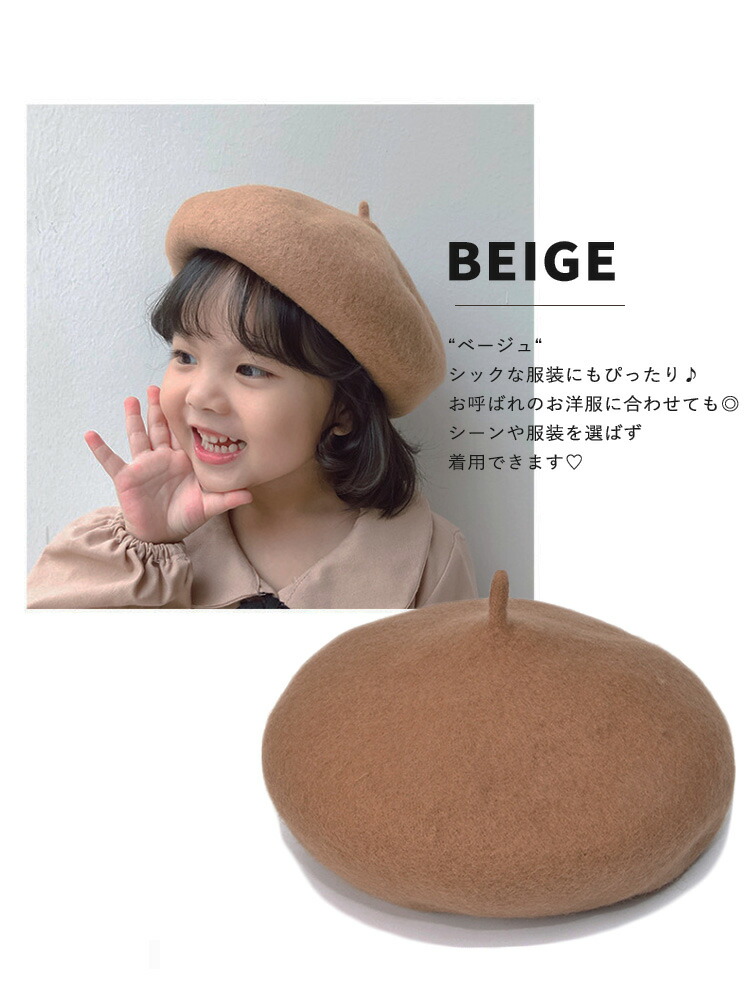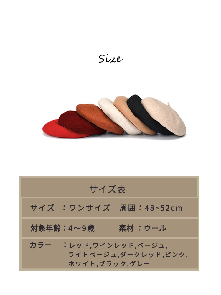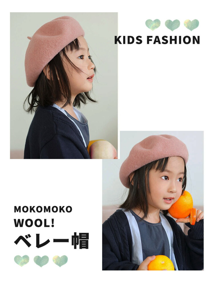 ベレー帽 キッズ 女の子 子ども フェルト ウール 帽子 子供 ジュニア こども 男の子 秋 冬 暖かい あったか きれいめ おしゃれ かわいい 可愛い シンプル ナチュラル 無地 幼児 保育園 幼稚園 小学生 発表会 通園 通学 黒 白 赤 ベージュ グレー ピンク
