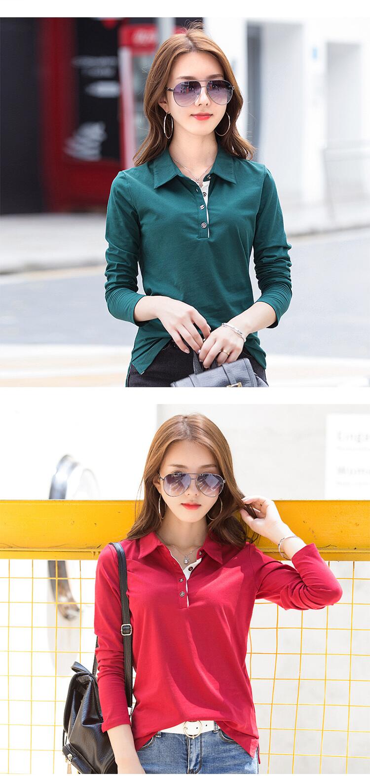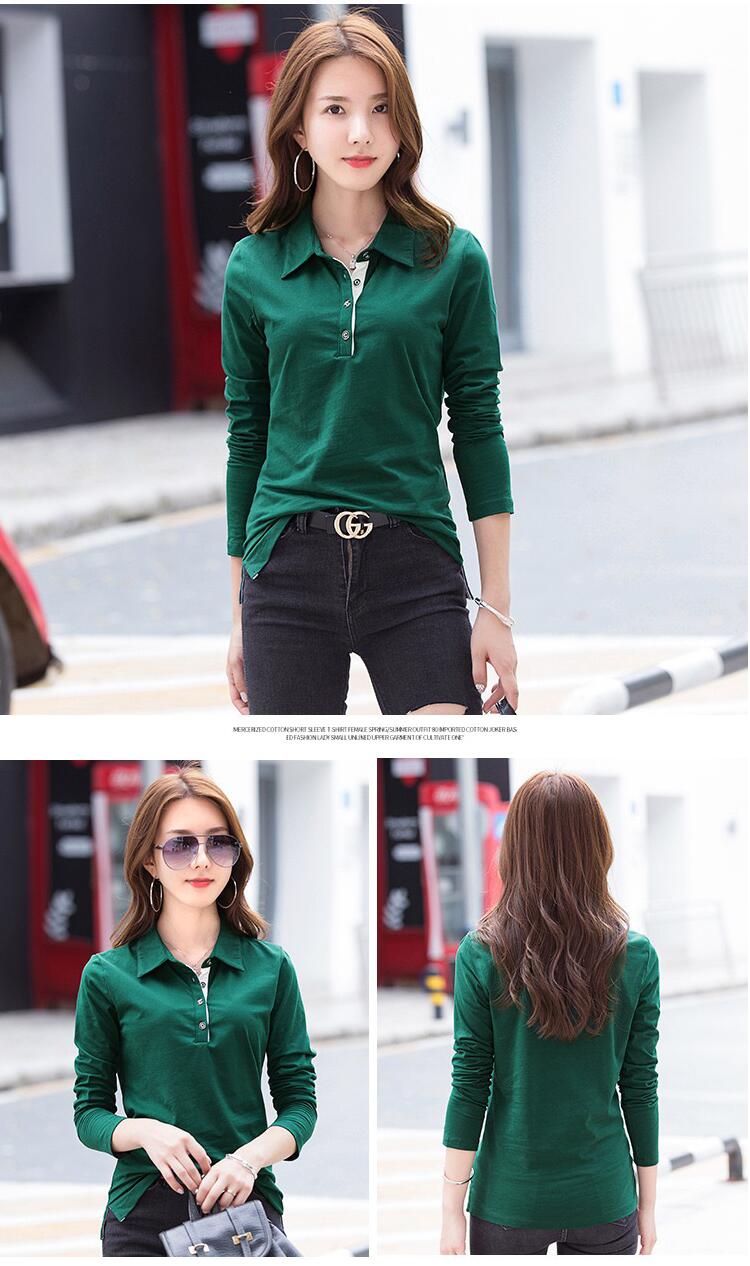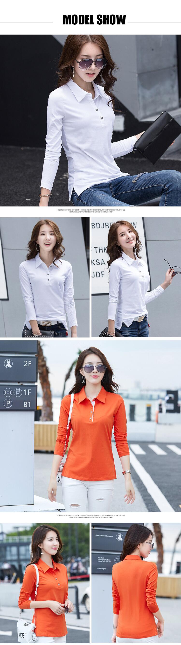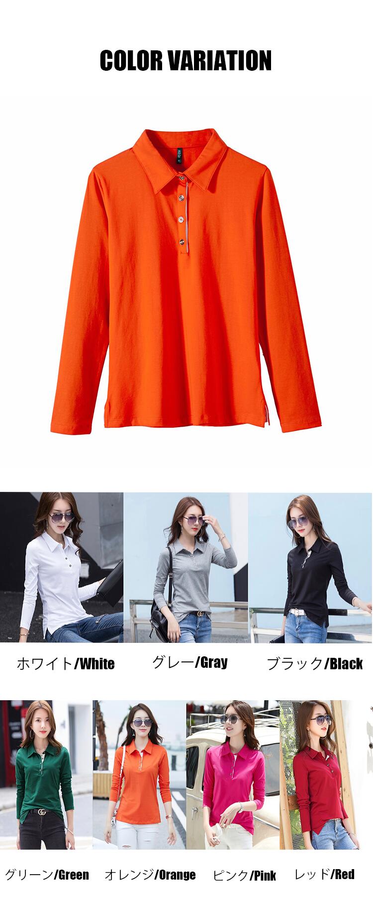 tシャツ 長袖 春夏 コットン 大きい 襟付き 通気性 柔らかい かわいい クールビズ スポーツ フォーマル オフィスカジュアル OL グリーン オレンジ 全7色20代 30代 40代 50代