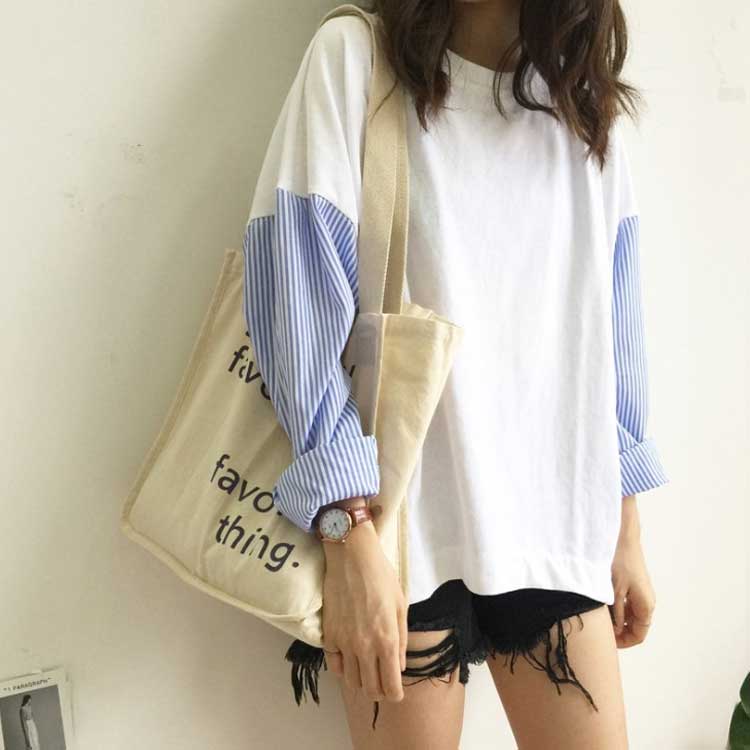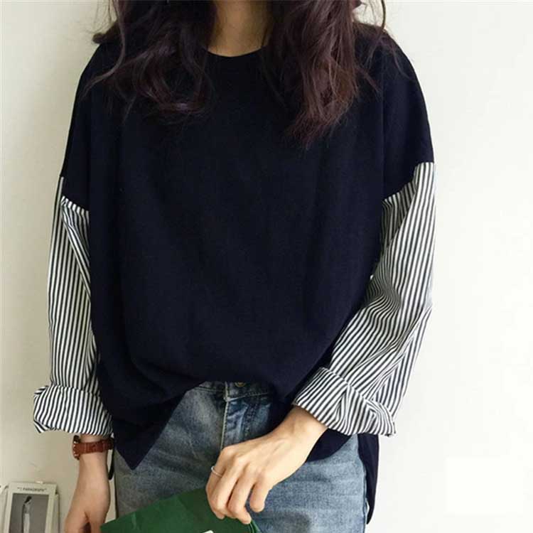 異素材 プルオーバー ストライプスリー
