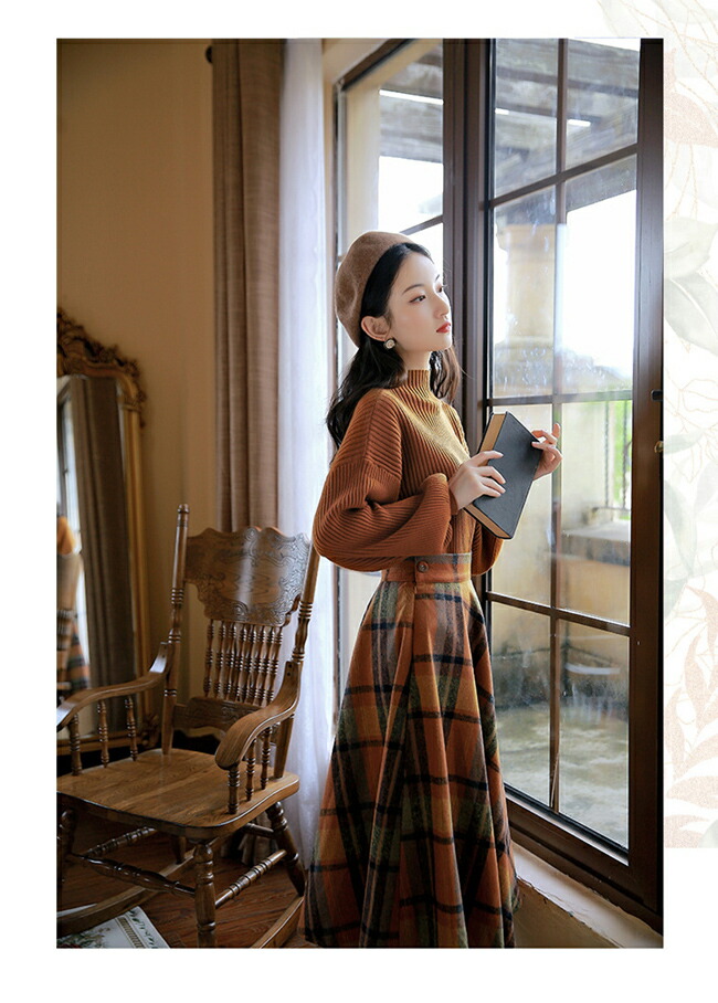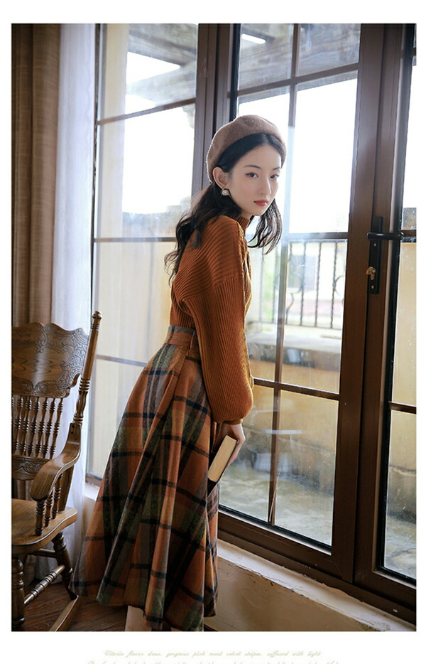 秋 冬 レトロワンピース レディースセ