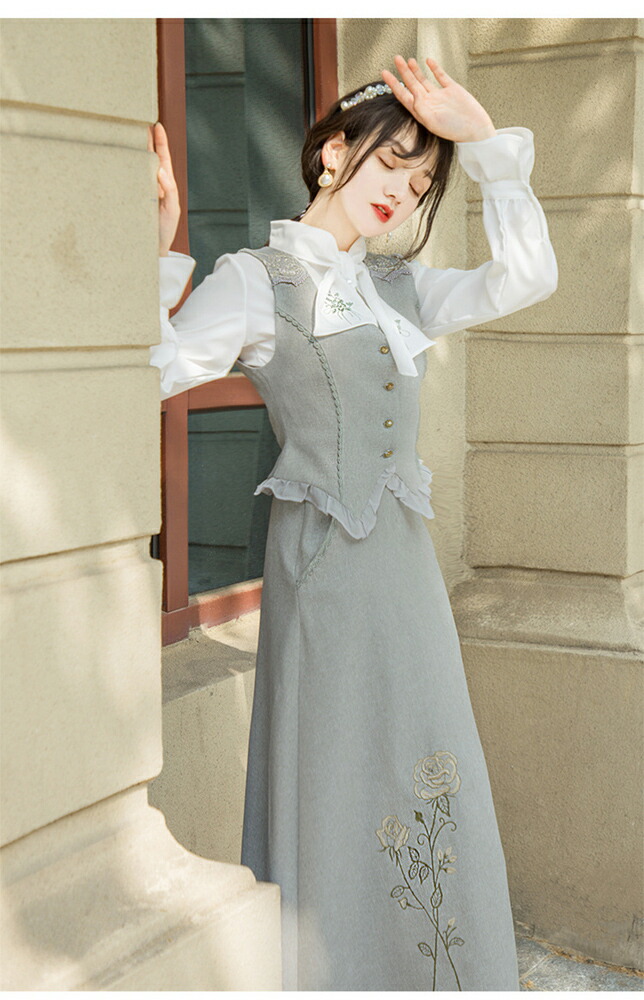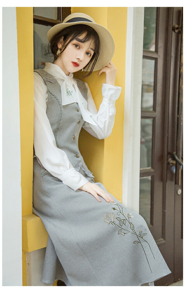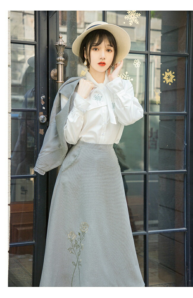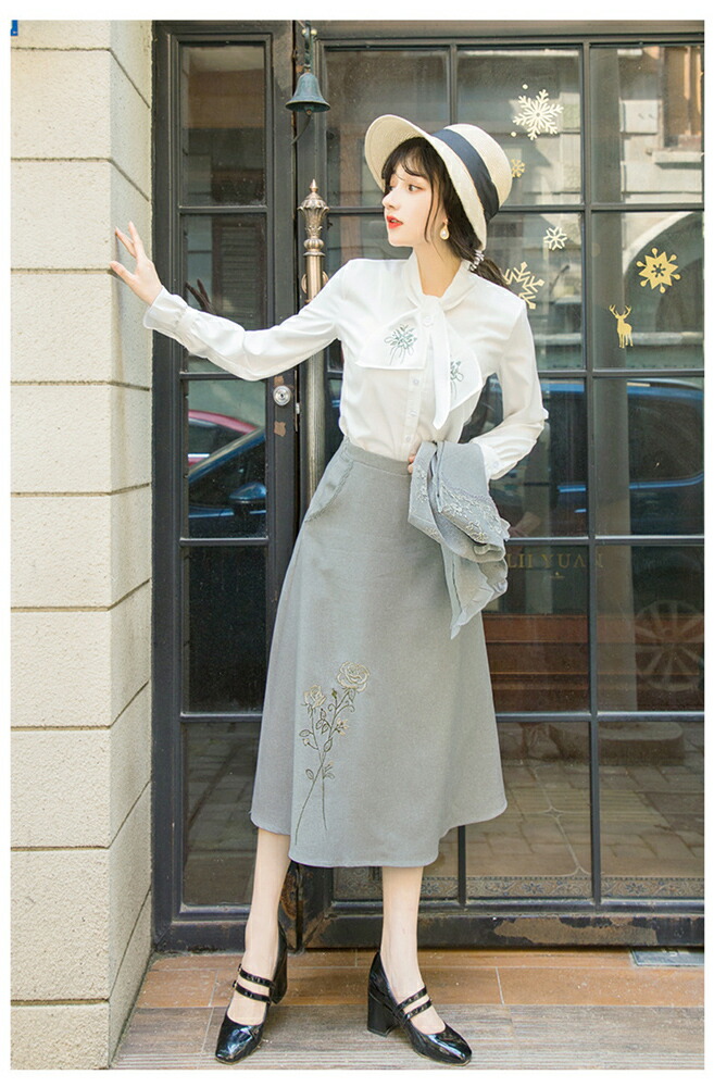 シアースリーブ ドッキングシャツ ボウタイシャツブラウス