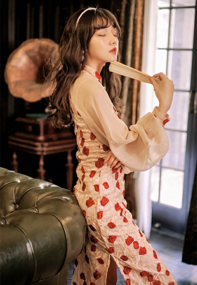 シアースリーブ ドッキングシャツ ボウタイシャツブラウス