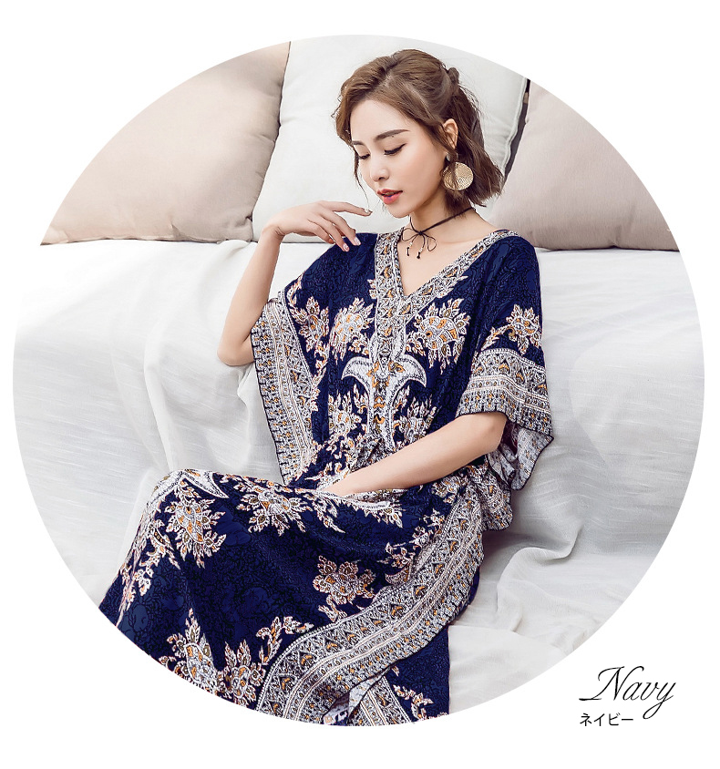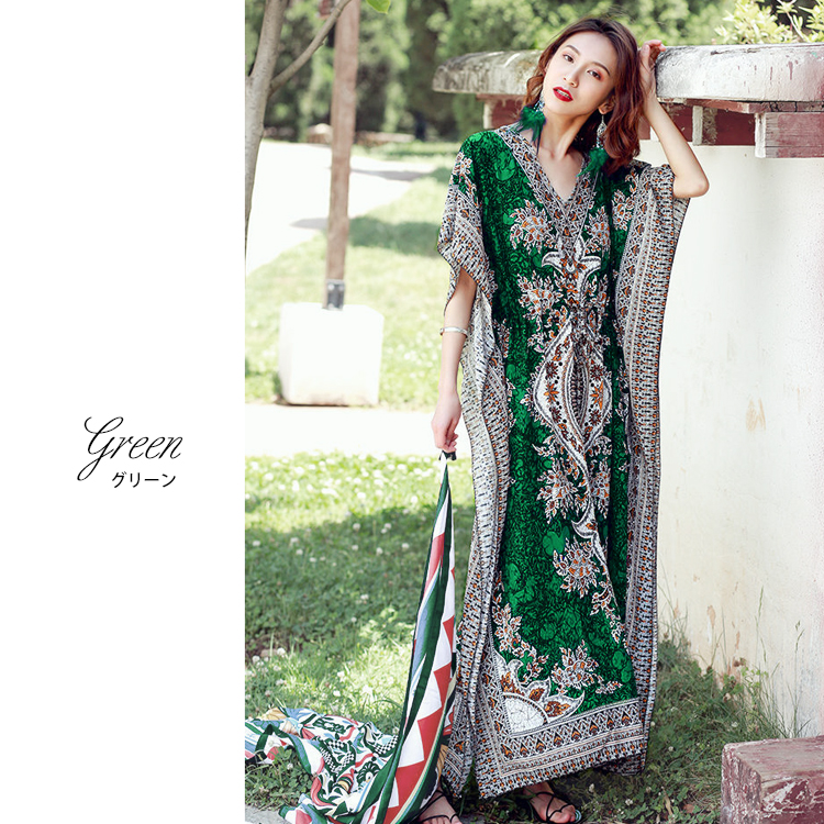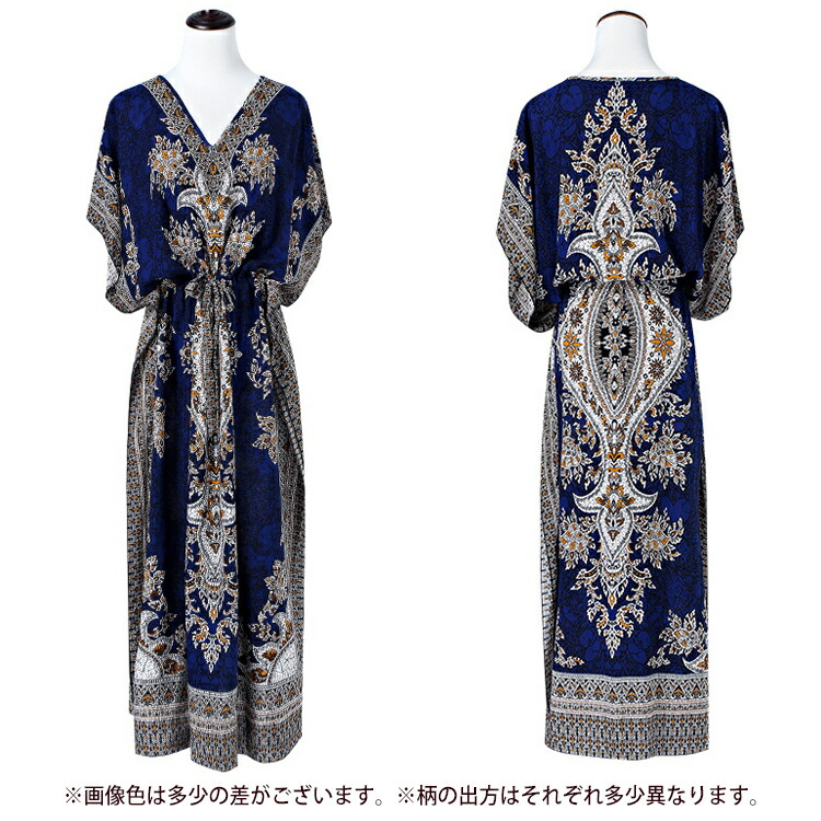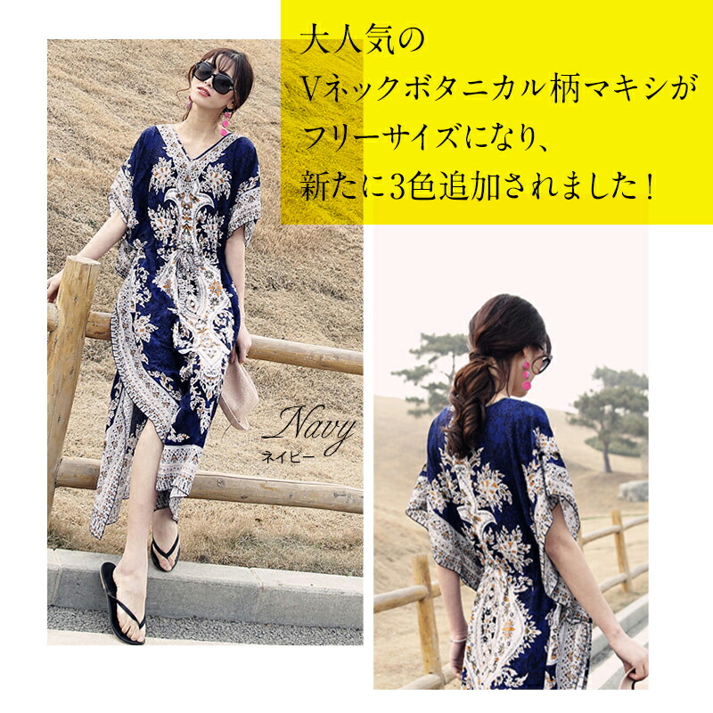 フリーサイズ Vネック ボタニカル柄マキシ ペイズリー柄マキシ ウエスト紐付 ロング丈マキシ ボタニカル柄 ロング丈マキシワンピース カラフル レディース リゾート