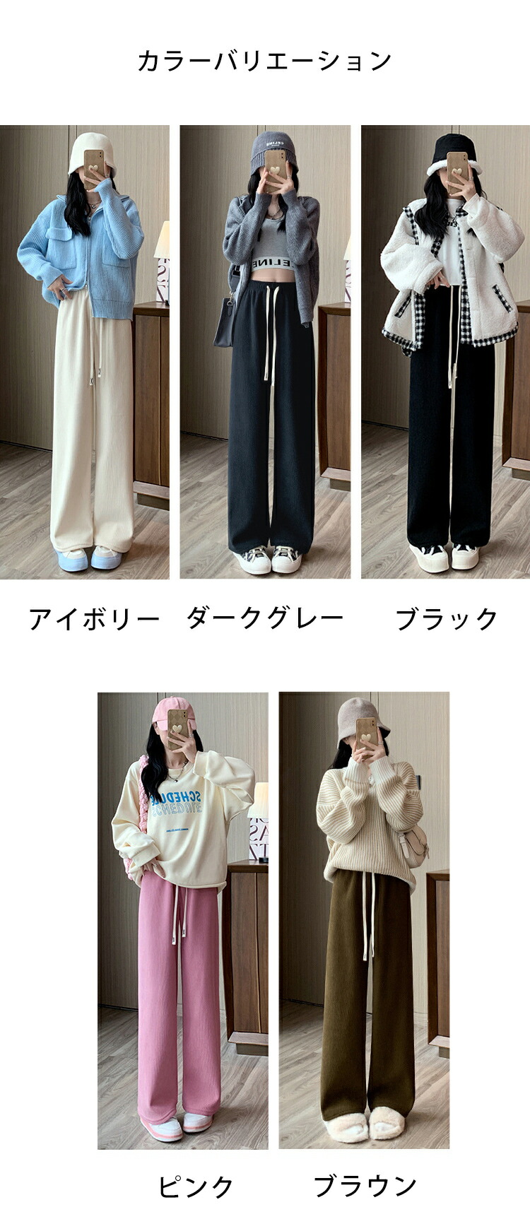 horizontal-key: アイボリー ダークグレー ブラック ブラウン ピンク キャラメル