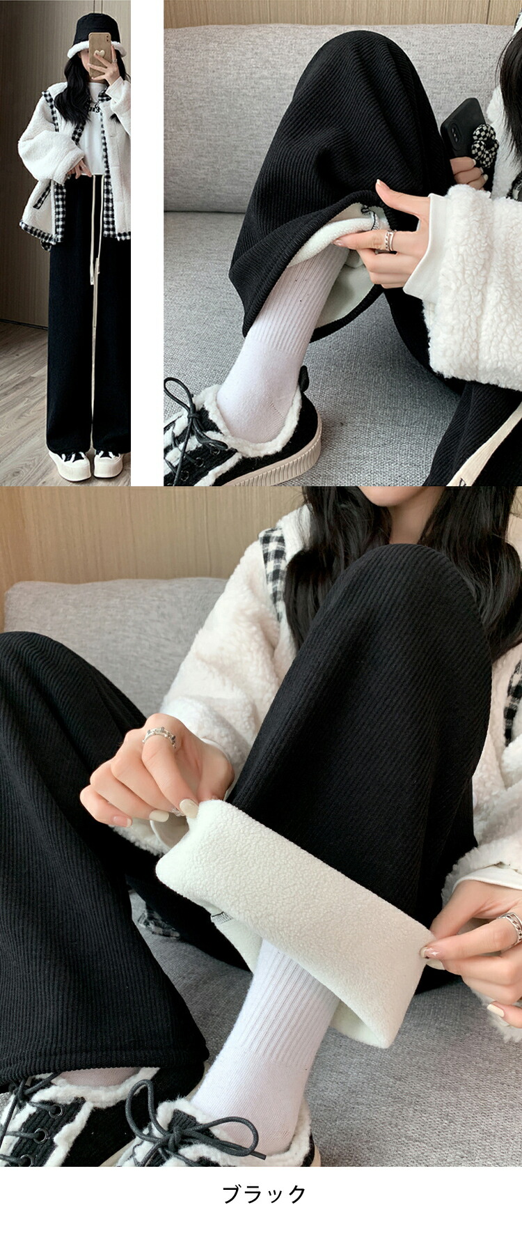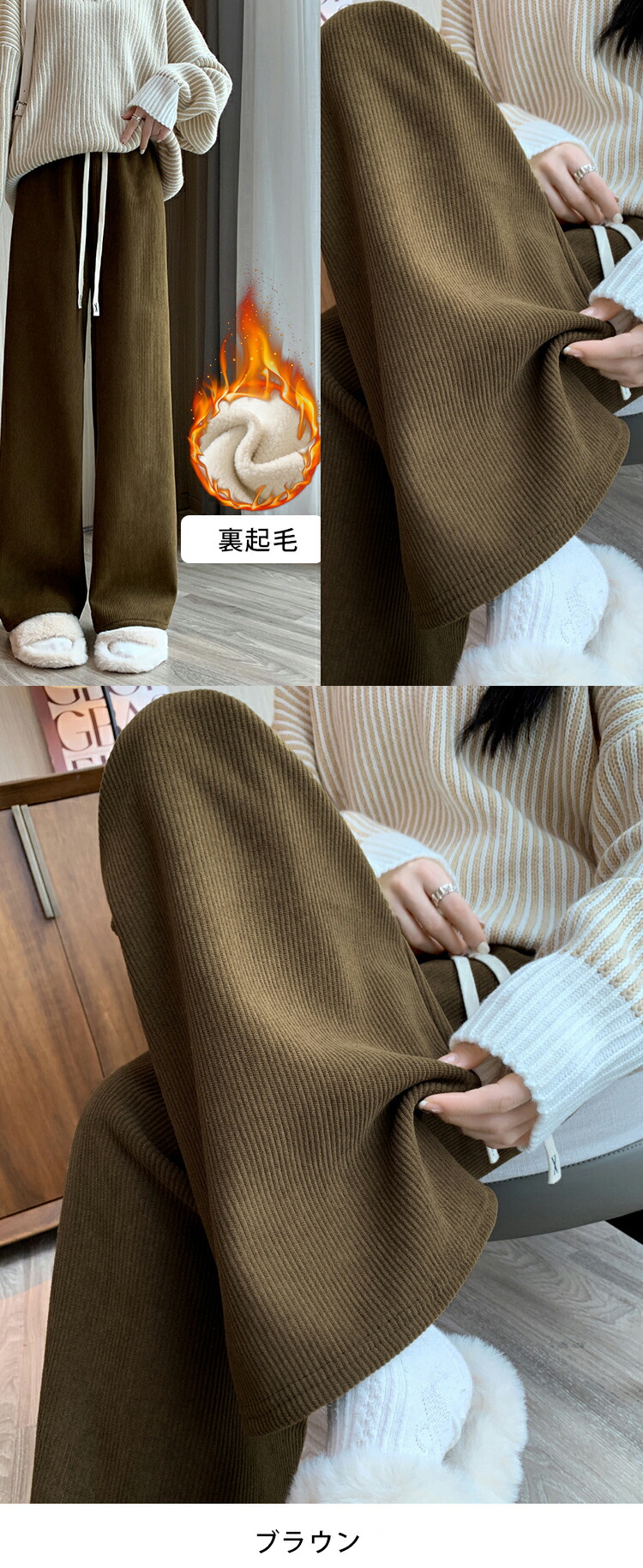 秋冬 裏起毛 暖か コーデュロイ リブ