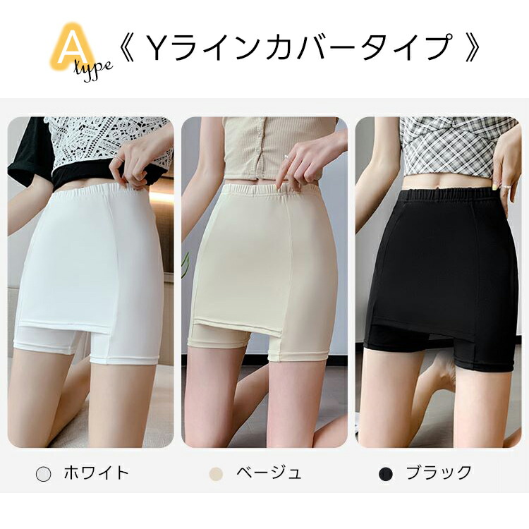インナー Yラインカバー レディース ペチパンツ ペチコート パンツ Vライン 透け防止 黒 白 スカートインナーパンツ 股ズレ防止 ショート丈