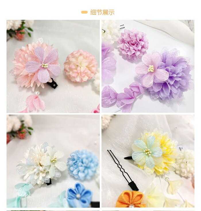 ヘアアクセサリー 女の子 フォーマル 結婚式 3歳 7歳 キッズ 子供 着物 袴 浴衣 コサージュ ピンク 赤 ブルー パープル