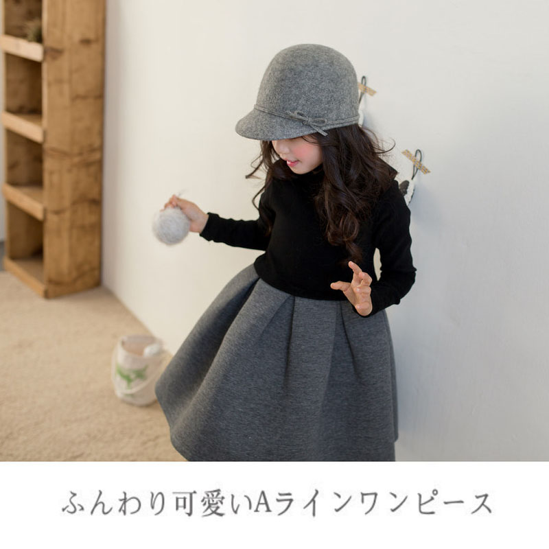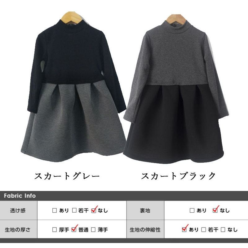 ハイネックAライン切り替えワンピース ブラック グレー ドレス ピアノ 発表会 七五三 大人気 お姫様ドレス 冠婚葬祭 長袖 パーティー 結婚式 二次会