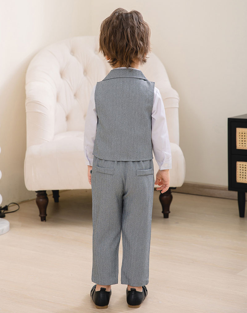 入学式 男の子 スーツ 4点セット 子供スーツ 卒業式 フォーマル スーツ キッズスーツ 小学生 シャツ+ズボン+ベスト+蝶ネクタイ こどもスーツ タキシード ジュニア 子供服 紳士服 卒園式 細身