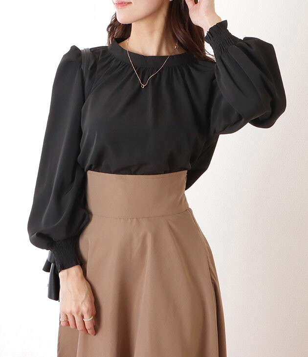 シアースリーブ ドッキングシャツ ボウタイシャツブラウス