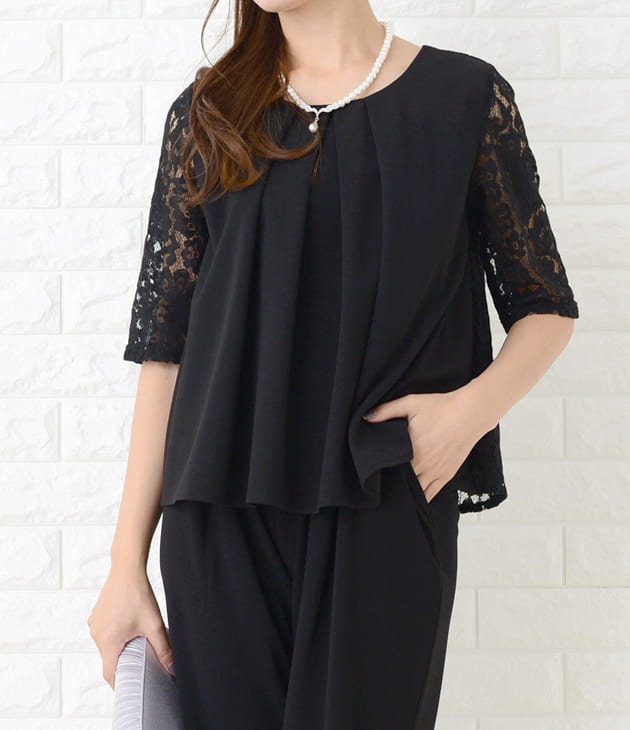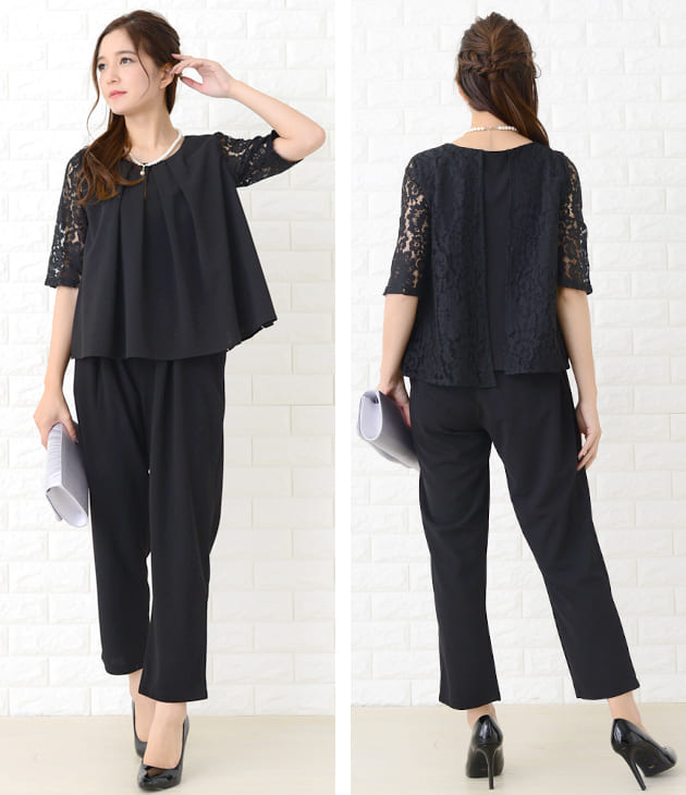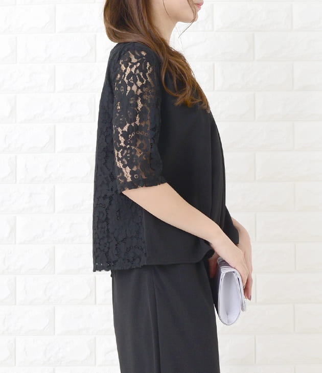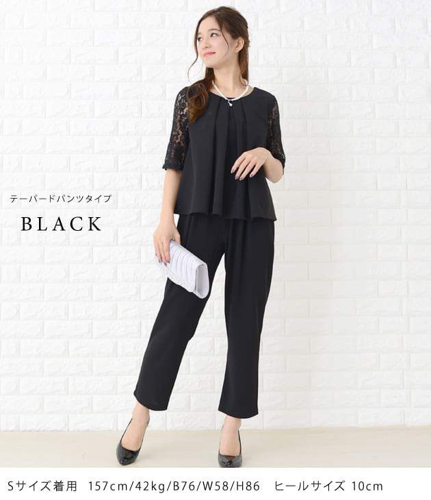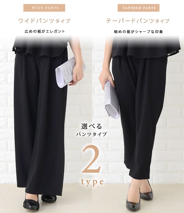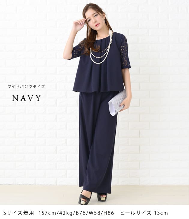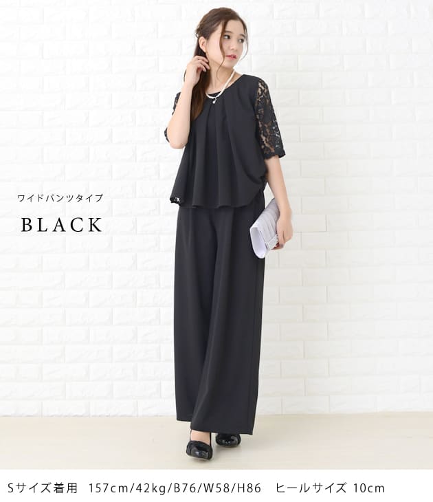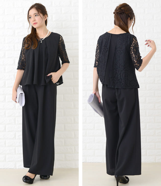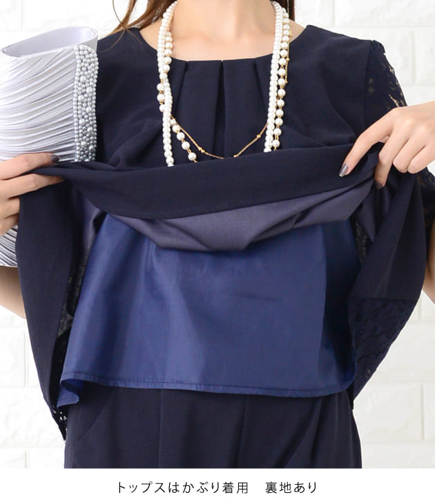 パーティードレス パンツドレス 選べる2タイプ ワイドパンツ テーパードパンツ セットアップ 上下セット 5分袖 花柄レース レディース フォーマル 上品 お呼ばれ 結婚式 入園式 入学式 大きいサイ