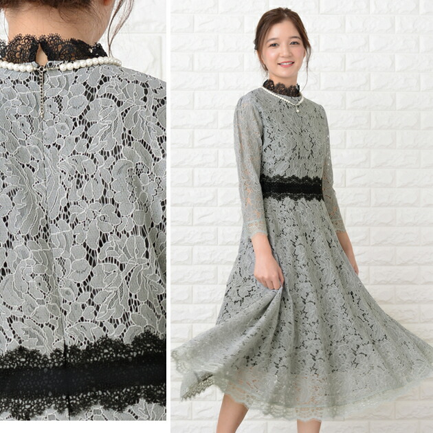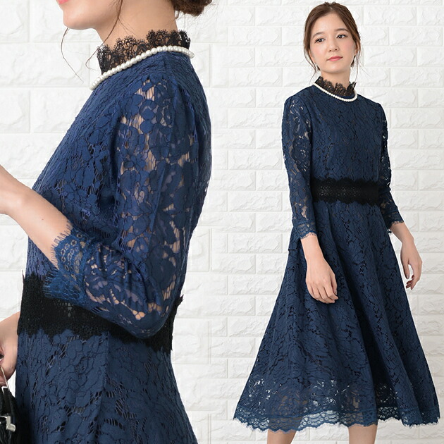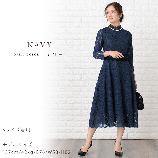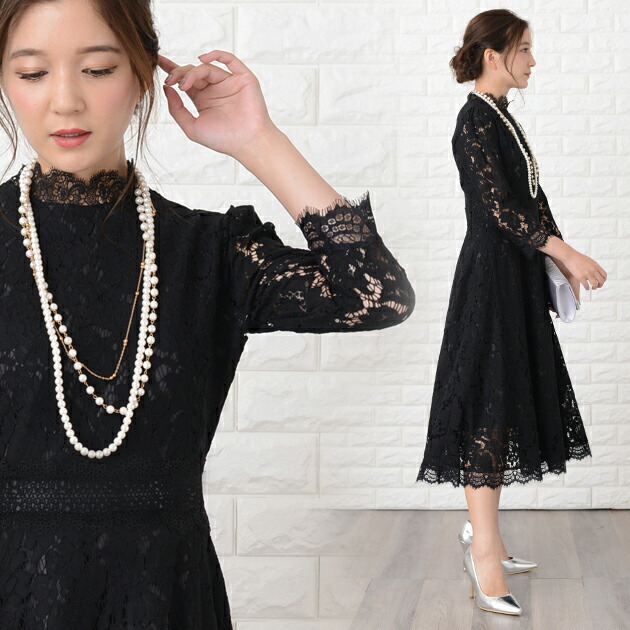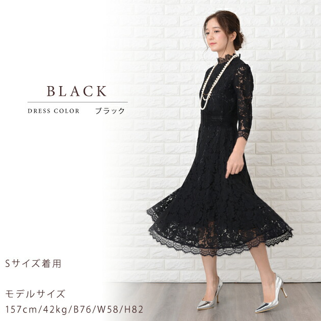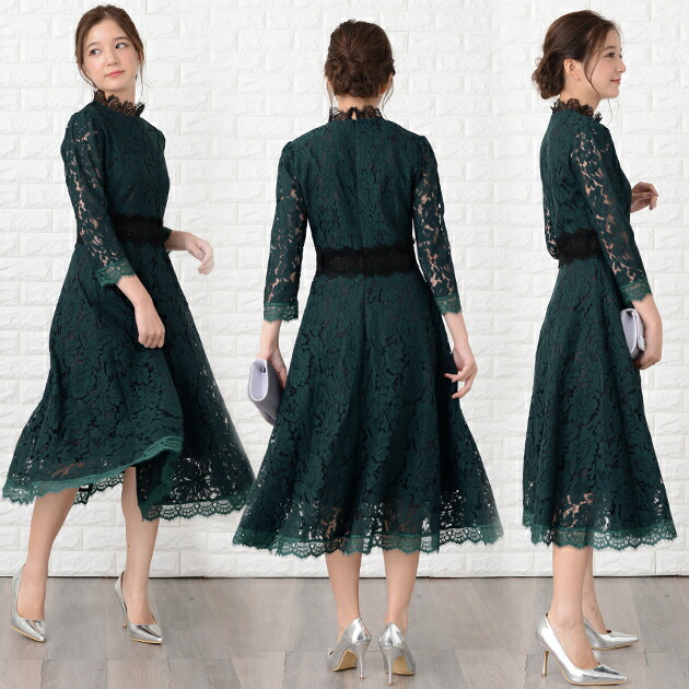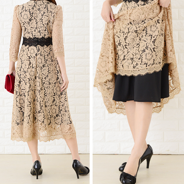 パーティードレス 総レース ミモレ丈