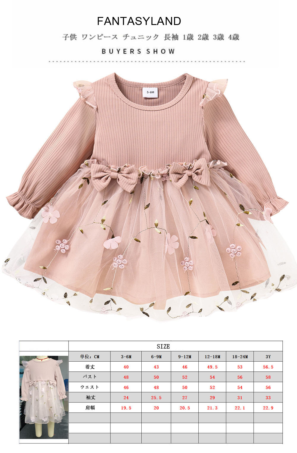子供 ワンピース チュニック 長袖 ワ