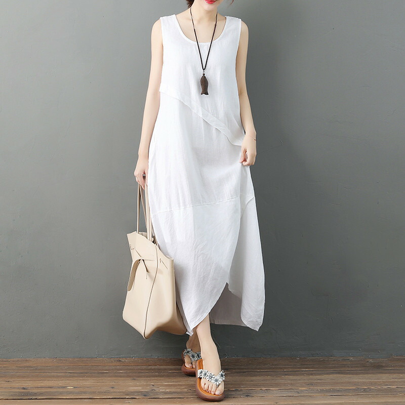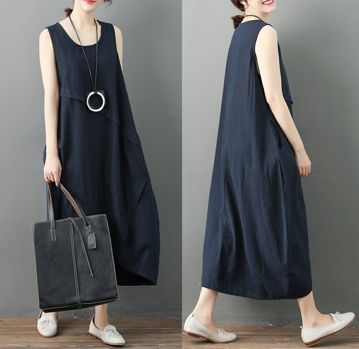 【3点送料無料】ノースリーブ 綿麻ワンピース リゾートワンピ リゾート ワンピース レディース 新作 Aラインワンピ マキシワンピース コットン リネン ロングワンピース 夏 綿麻 カジュアル 森ガール ワンピース 無地 体型カバー ナチュラル