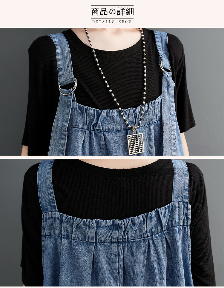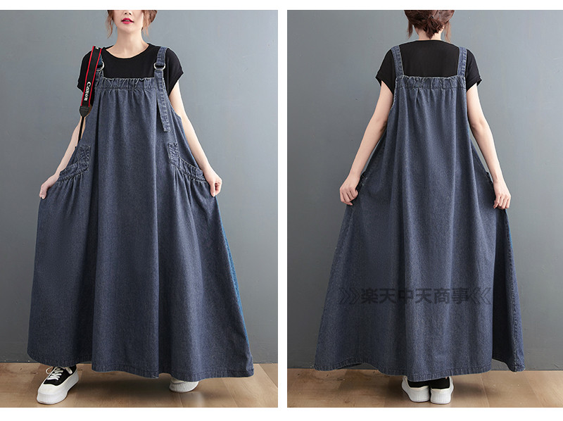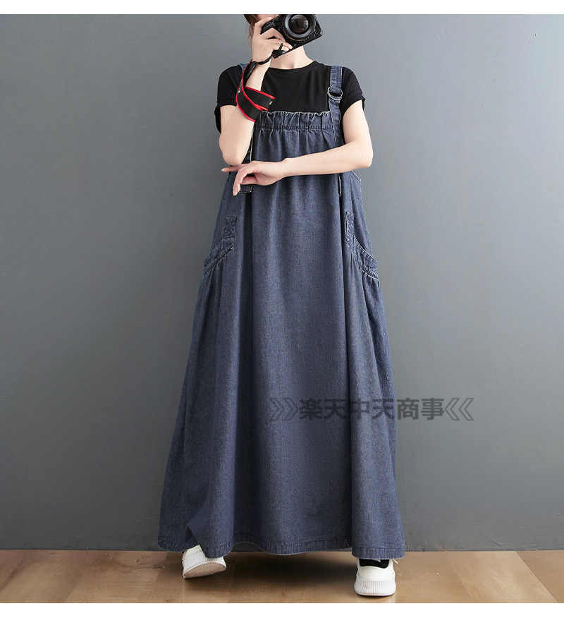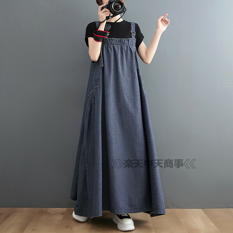 ジャンパースカート デニム デニムワンピース ロング マキシワンピース 春 秋 ロング丈 ジャンスカー サロペット 大きいサイズ デニムワンピ ポケット付き