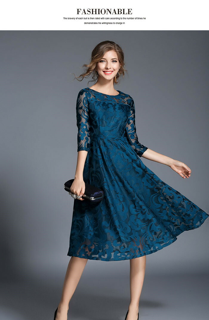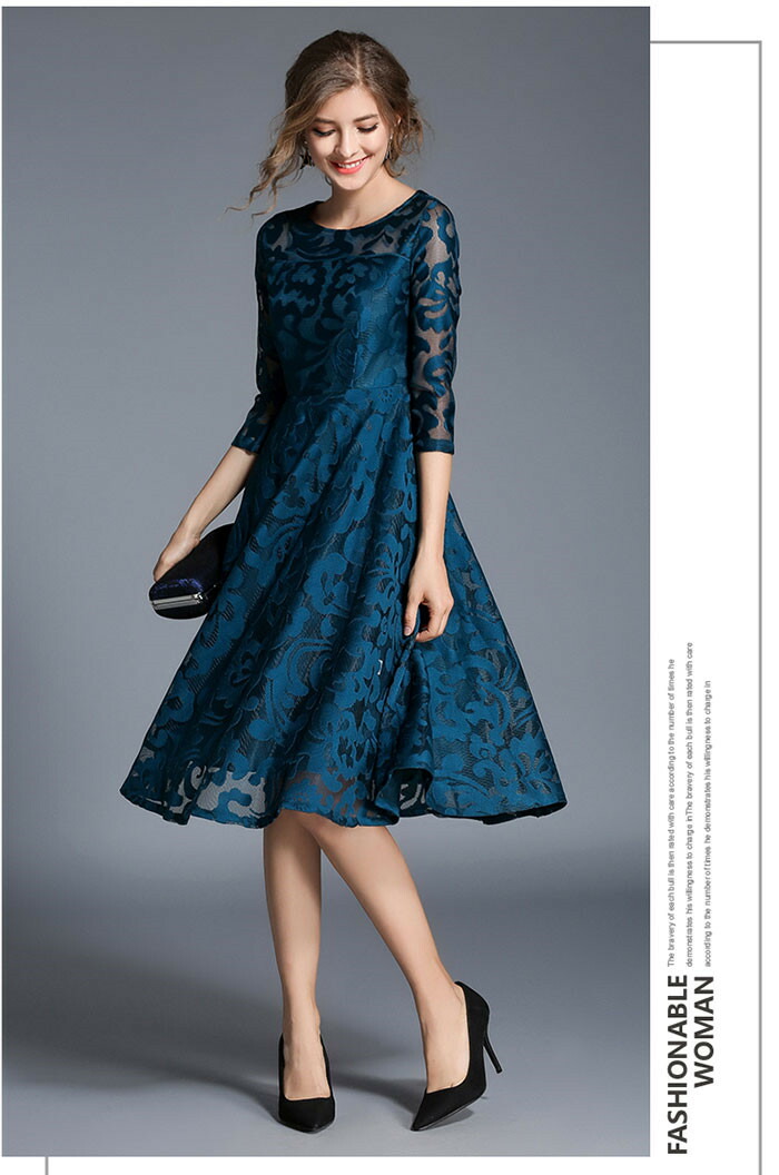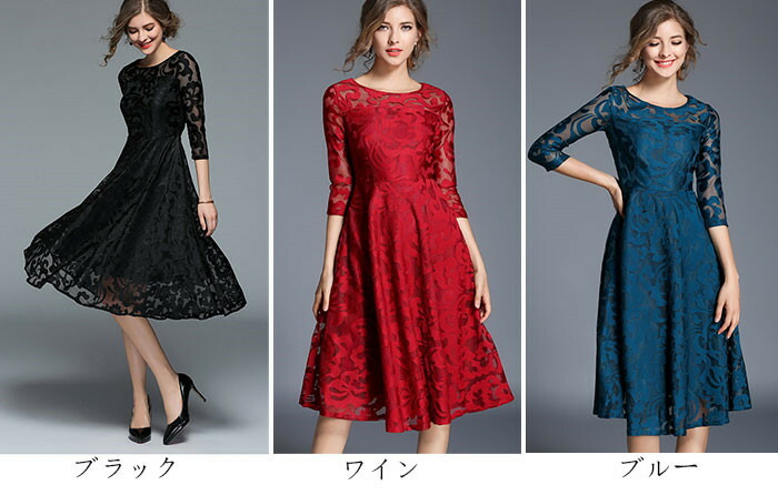 「送料無料」ドレス ロングドレス ミモレ丈ワンピ 総レース レースワンピ 結婚式 パーティードレス 袖あり ワンピース ドレス ロング丈ワンピ-ス 七分袖 ワンピース パーティー ドレス 二次会 披露宴 フォーマルドレス レデイース オシャレ エレガント 上品 お呼ばれ 大きいサイズ