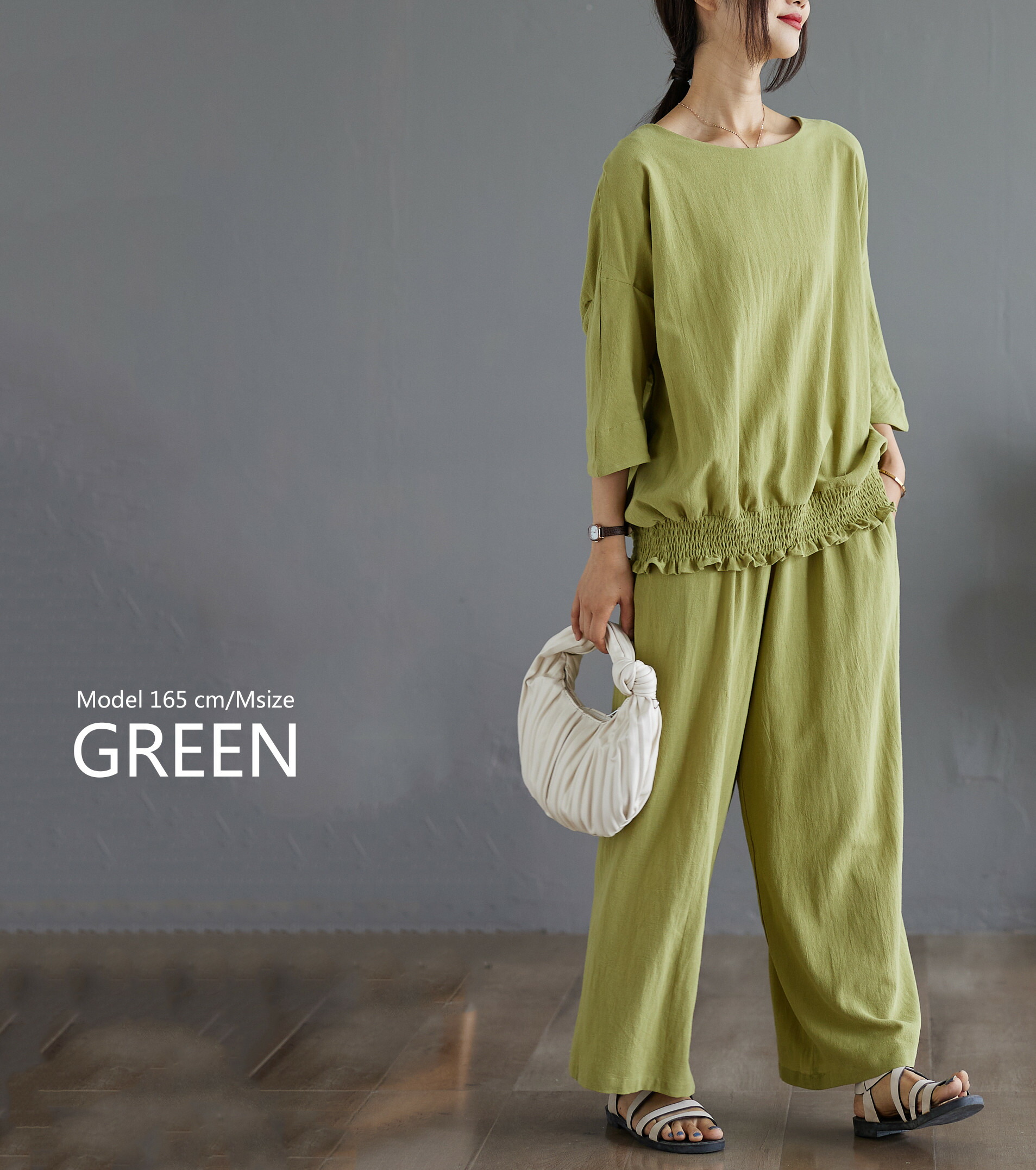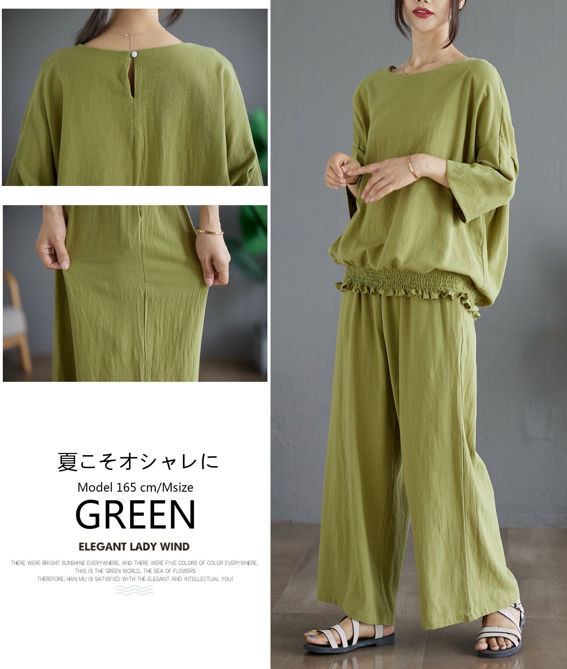 ひんやり涼しい接触冷感機能がセットアップで登場 レディース セットアップ 涼感 リラックス 体形カバー パンツ ラフ 楽ちん ゆったり ワンマイル イージーパンツ ルームウェア きれい