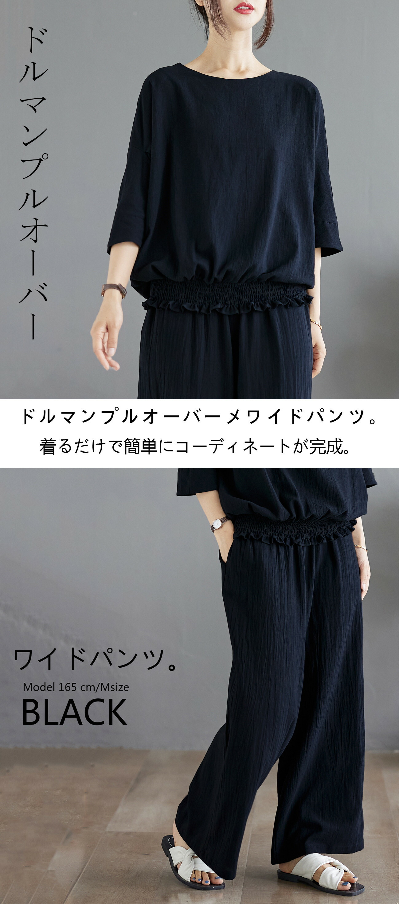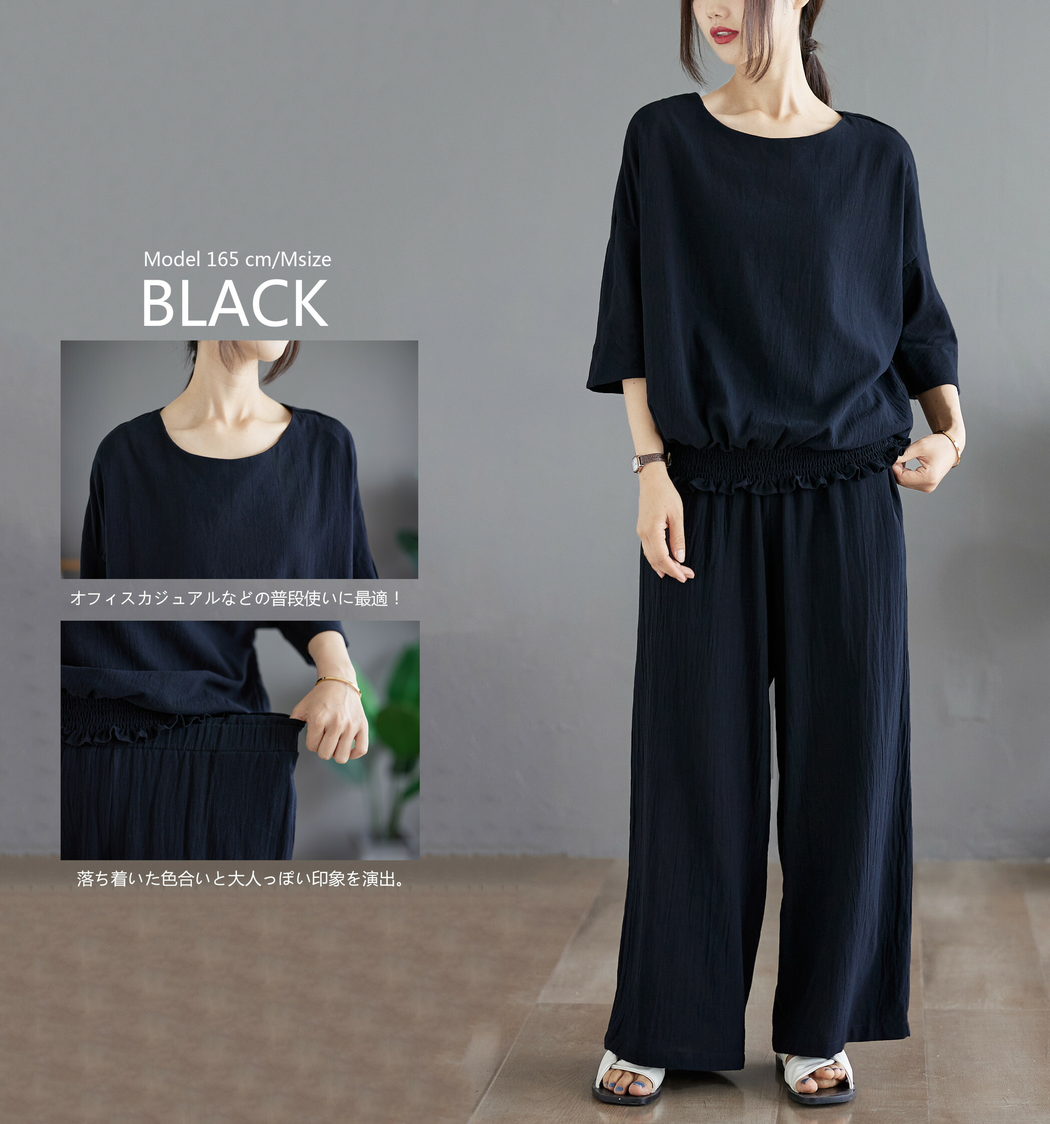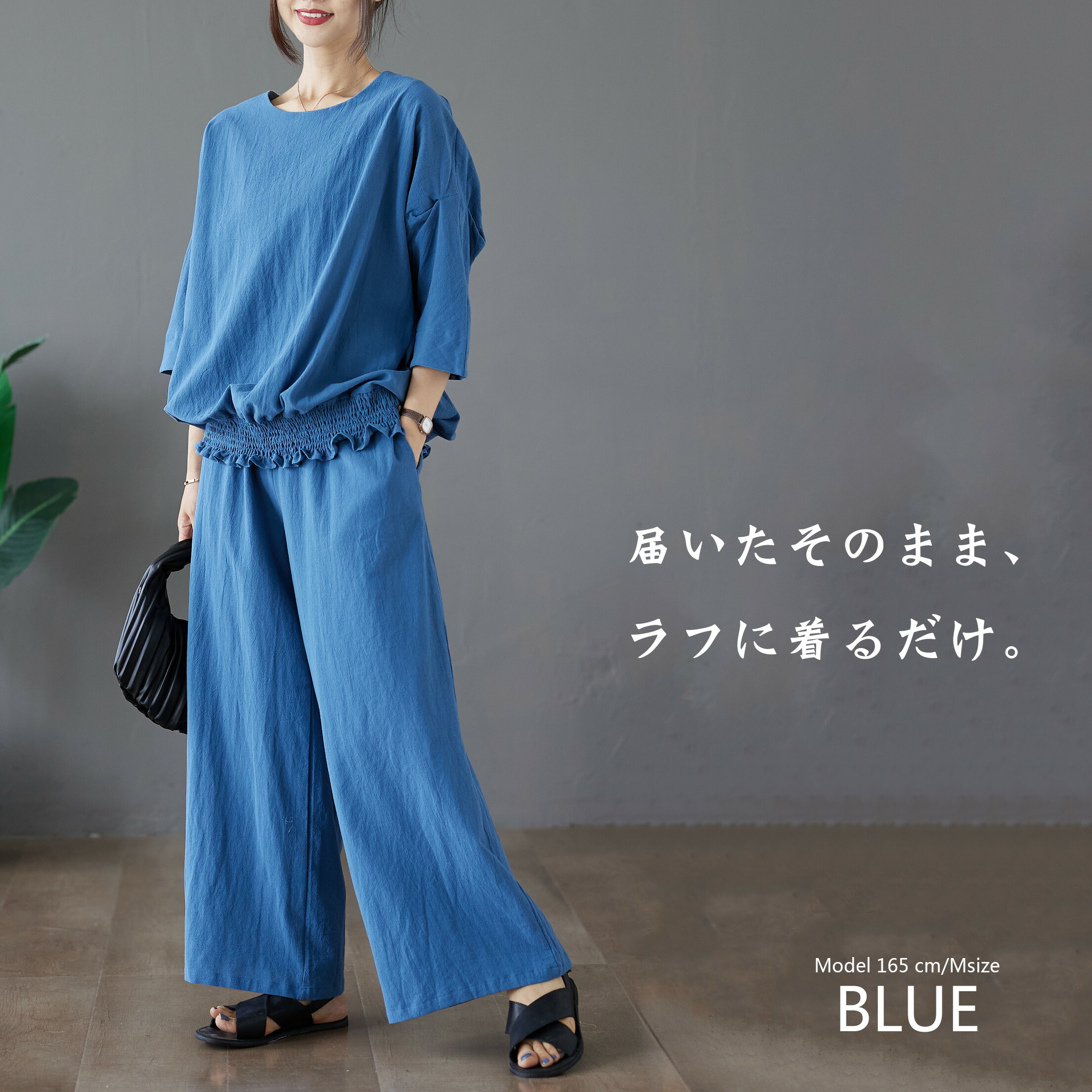 「送料無料」【chuten】セットアップ 上下セット トップス ボトムス プルオーバー ワイドパンツ レディース 春夏 涼しい 接触冷感 ひんやり ひんやり素材 涼感 半袖 ウエストゴム シャーリング ゆったり リラックス ワンマイル ラフ カジュアル 楽ちん 新カラー NEWカラー NEWCOLOR ブラック ダークグレー ライトモカ オリーブ アッシュブルー ベイクドピンク 黒 茶色 緑 青 春 夏 春服 SS 新作 新作 NEW ナチュラル きれいめ 大人可愛い 大人女子 お洒落 トレンド シンプル ニュアンス M L Mサイズ Lサイズ M~L M-L 体型カバー ぽっちゃり プチプラ ファッション レディースファッション ママ服 20 30 40 50 20代 30代 40代 50代