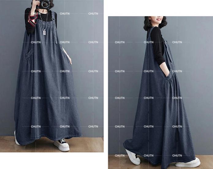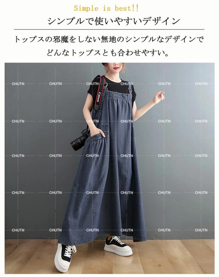 ジャンパースカート デニム サロペット ワンピース 夏 ロング丈 ゆったり 大きいサイズレディースファッション ジャンパースカート