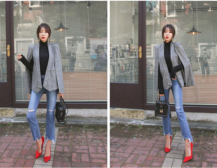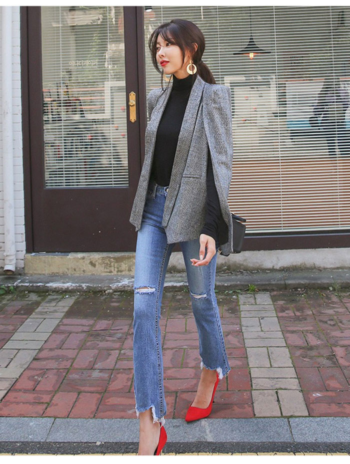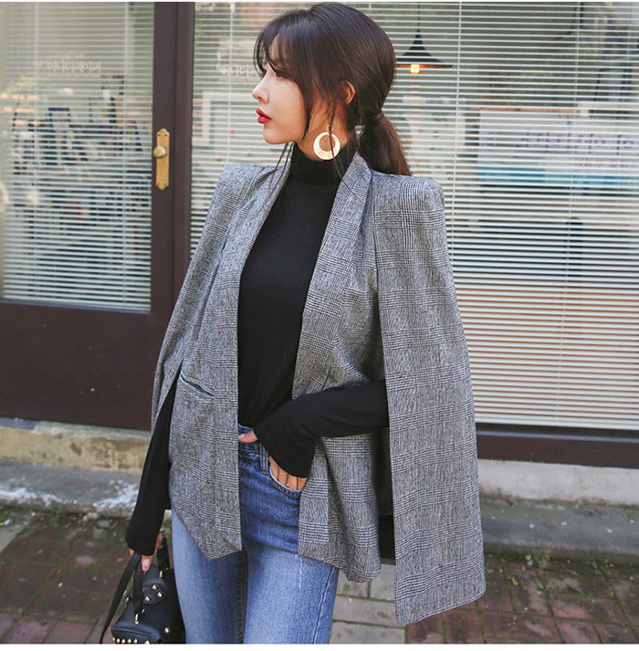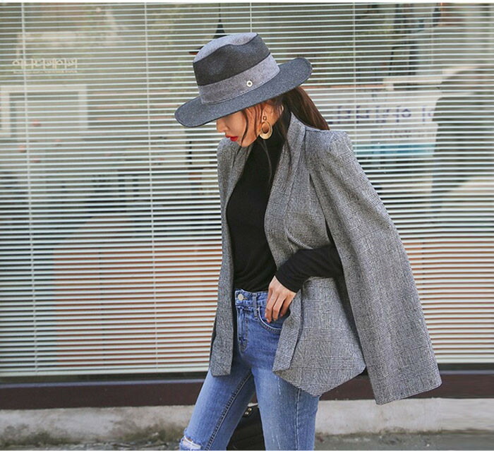 「送料無料」【chuten】ポンチョコート テーラードジャケット ブレザー コート 千鳥柄 グレンチェック マント ポンチョコート 秋冬 ブラックフォーマル レディース ポンチョ大判 ジャケット 人気 新作 エレガント 上着 アウター 長袖 通勤 ビジネス OL オフィス フェミニン