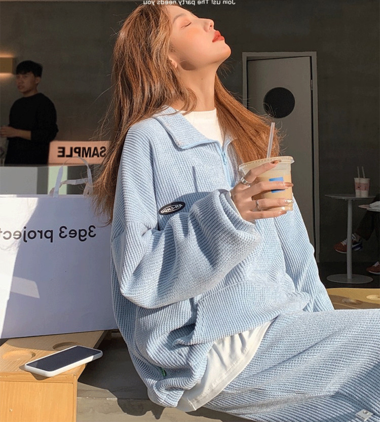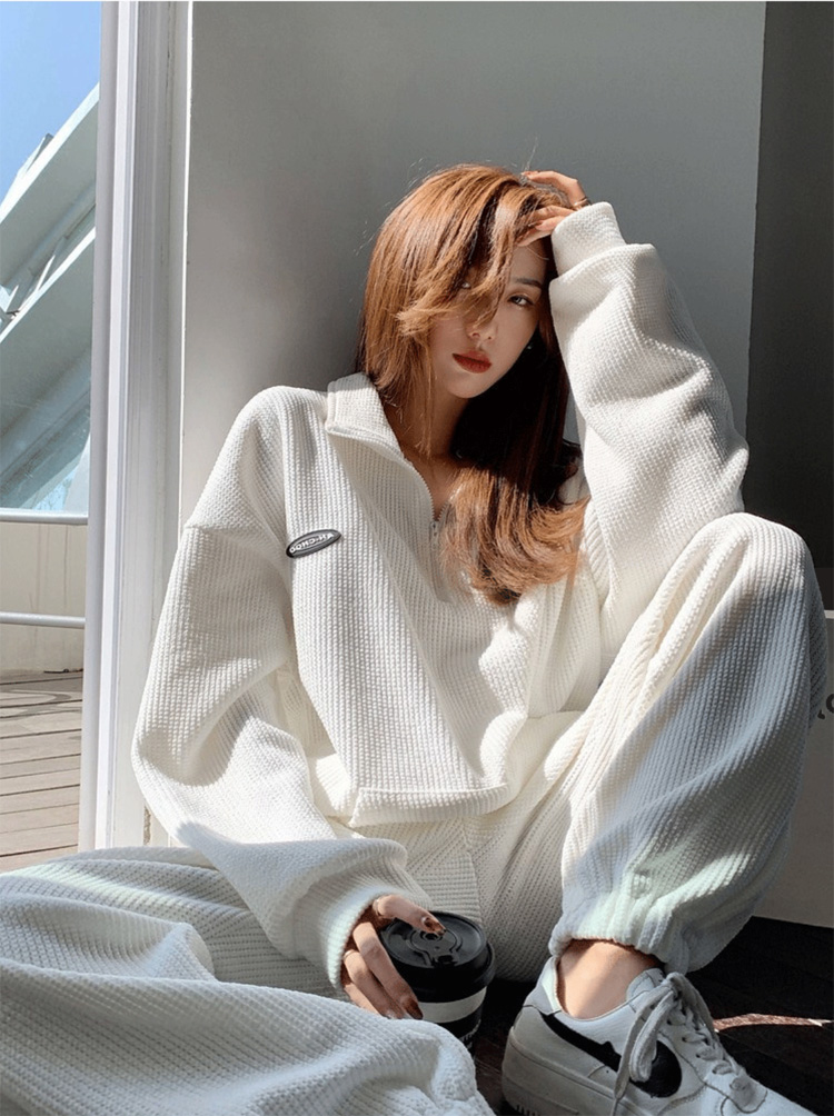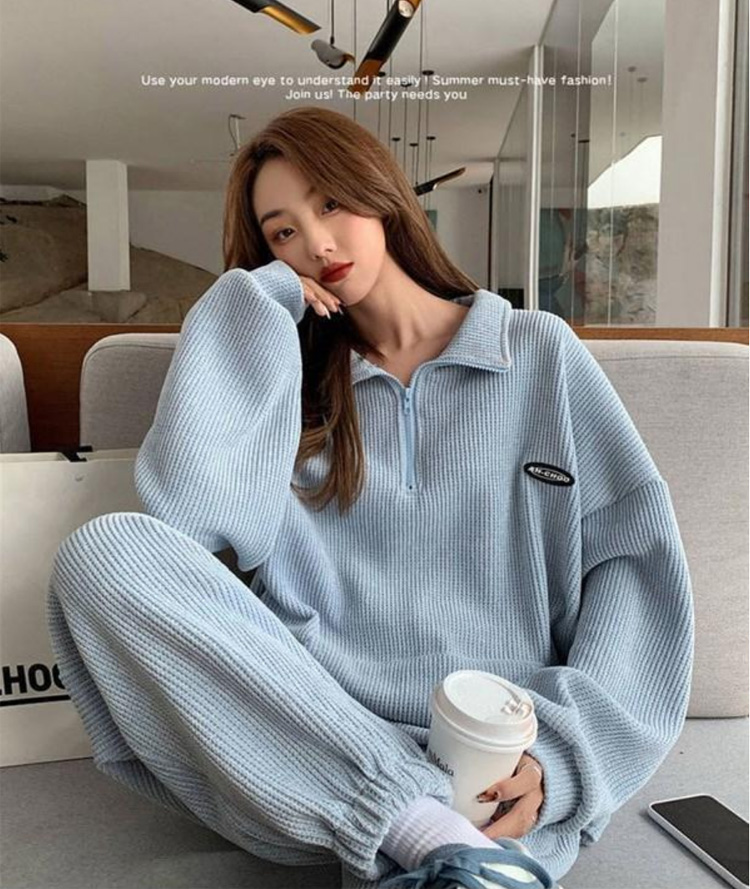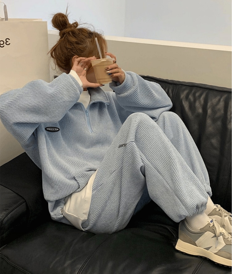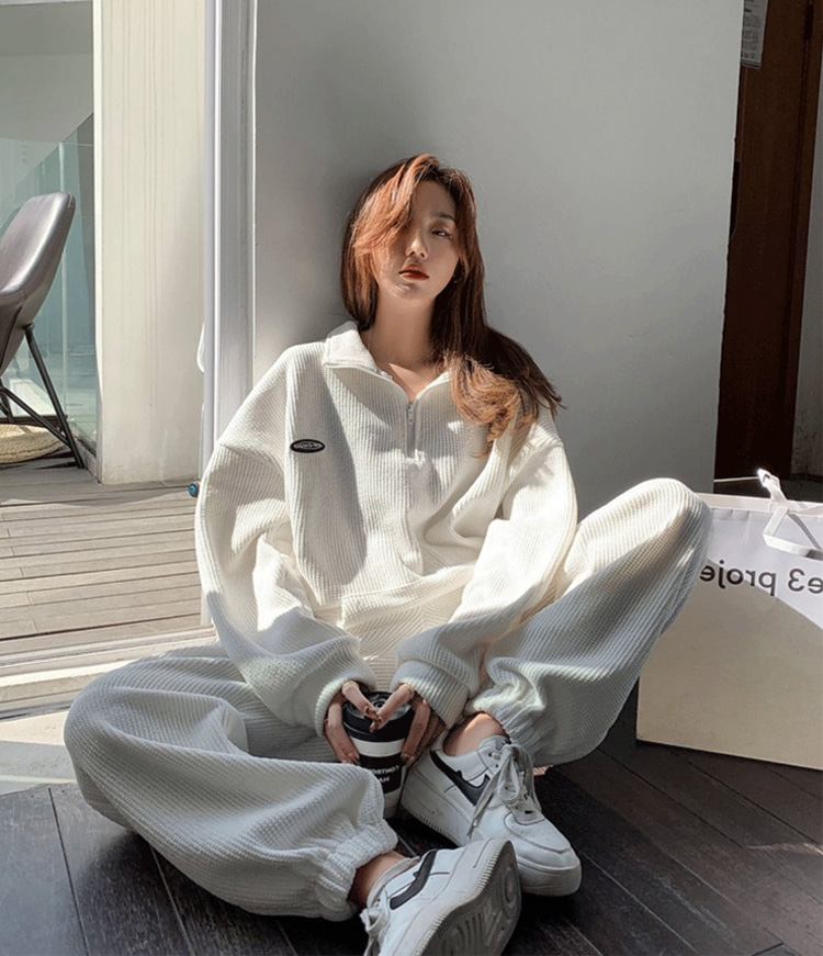 4サイズ 2カラー ハーフジッププルオーバーセットアップ ワッフル生地 スウェット 上下セット ライトブルー ホワイト スポーツウェア ダンス ダンスウェア ランニング ウォーキング