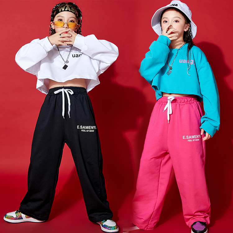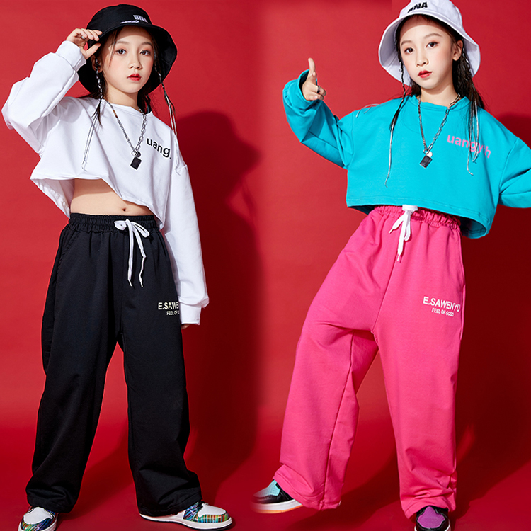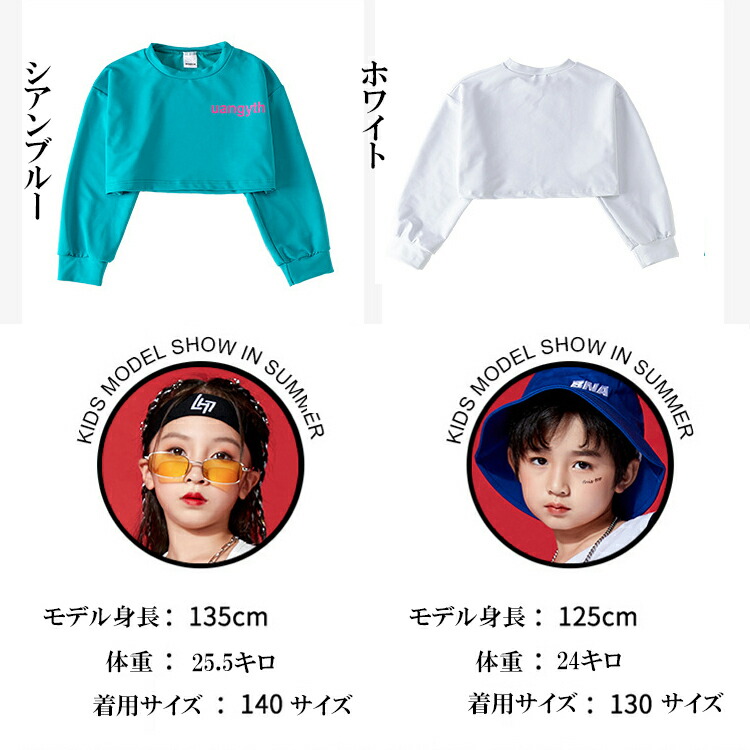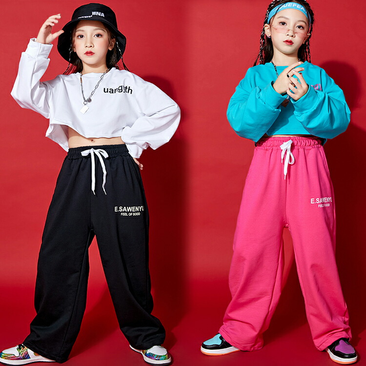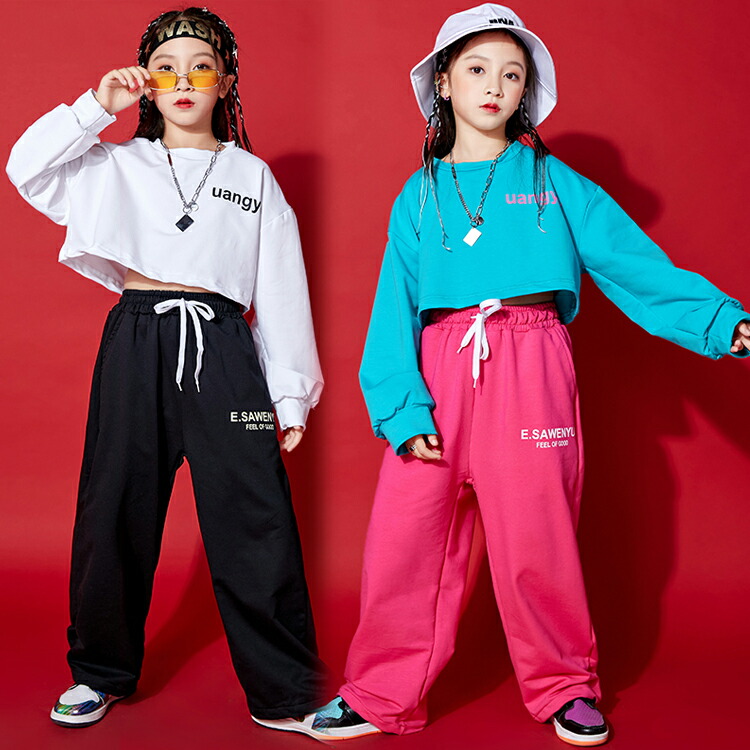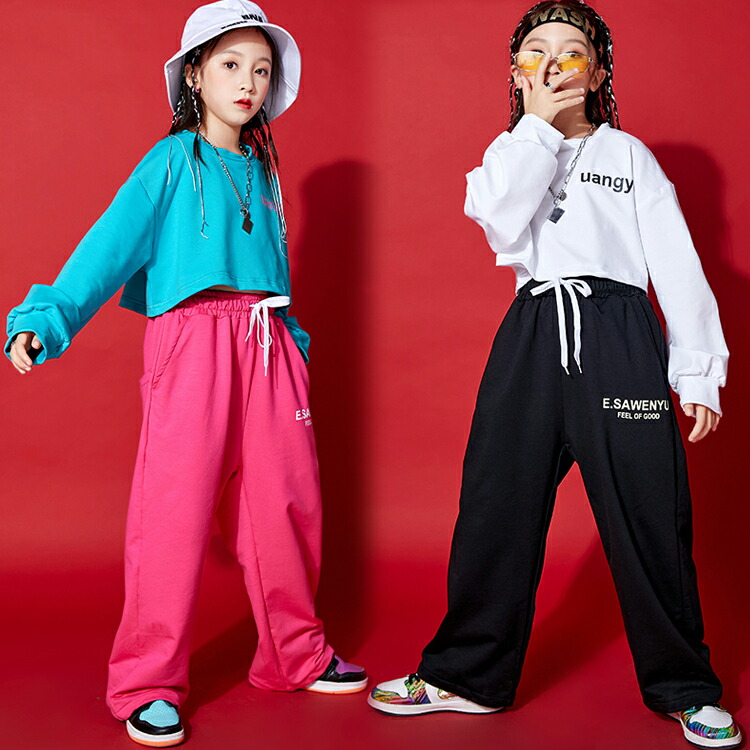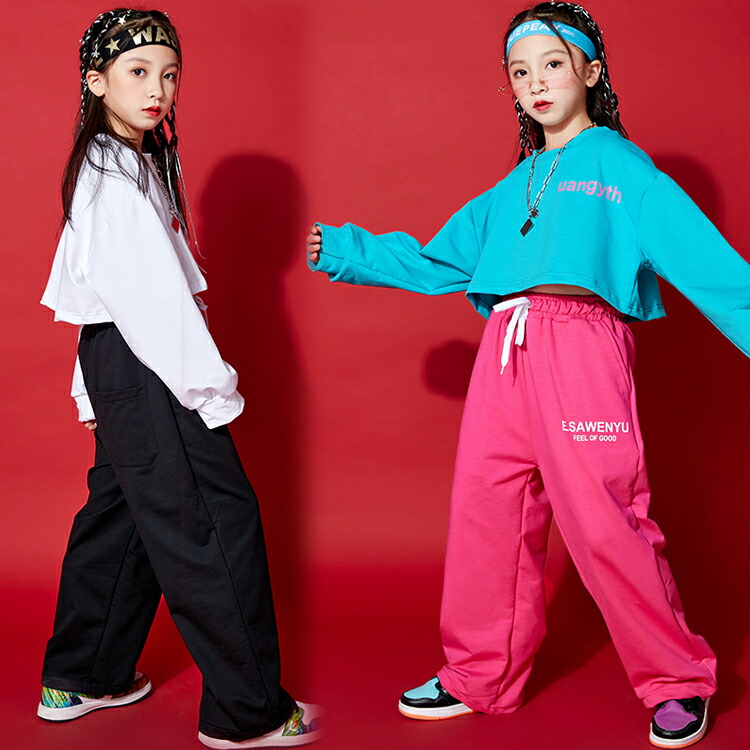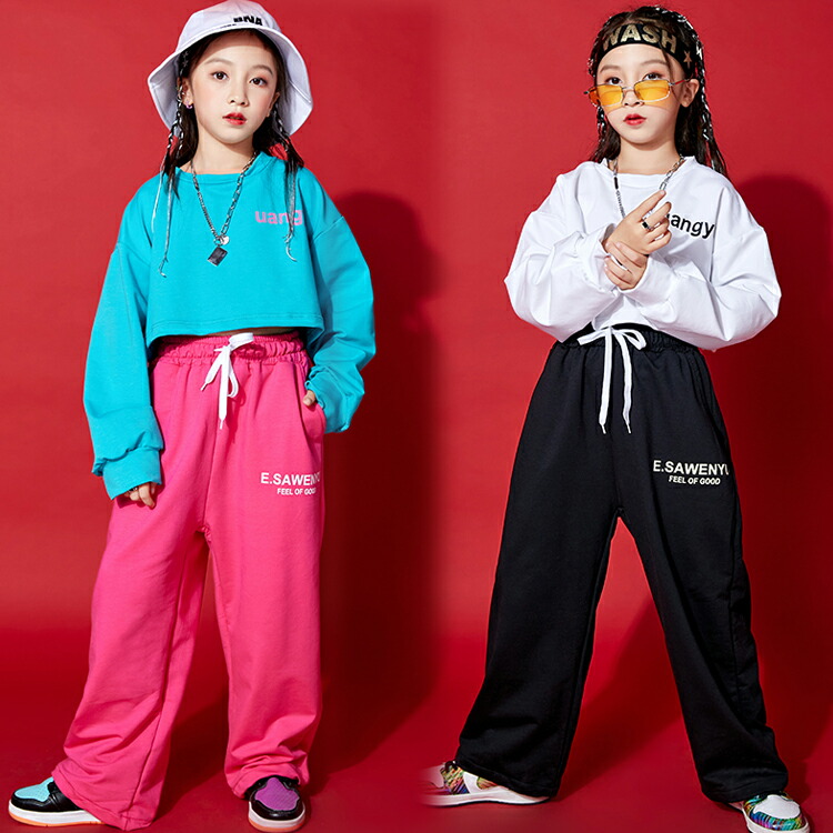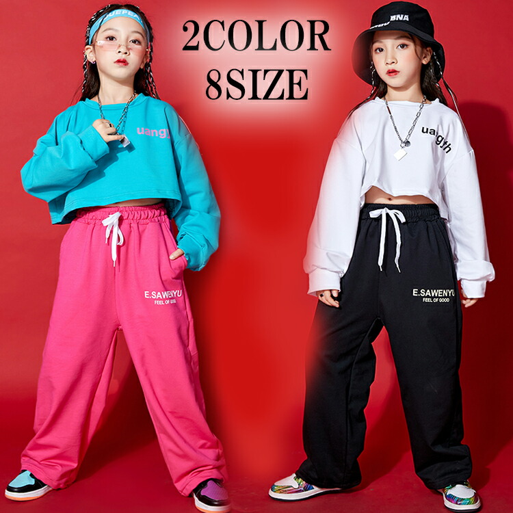 2カラー 8サイズ キッズダンス衣装 ショート丈 長袖トップス スウェットパンツ 別売り キッズダンス キッズボトムス 長ズボン キッズトップス 長袖 クルーネック
